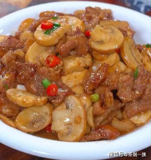 三、鲜蘑炒肉