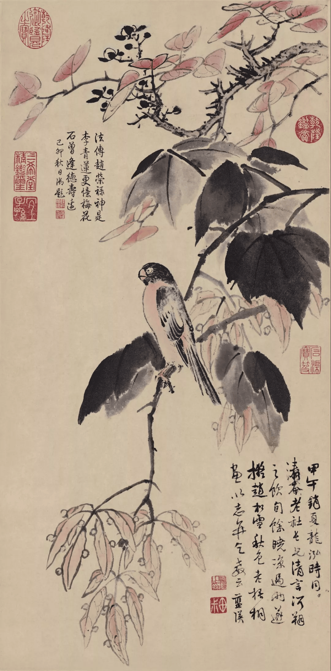 叶片深灰却又凝重,栖枝的秋鸟闪动着秋思,