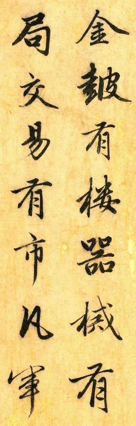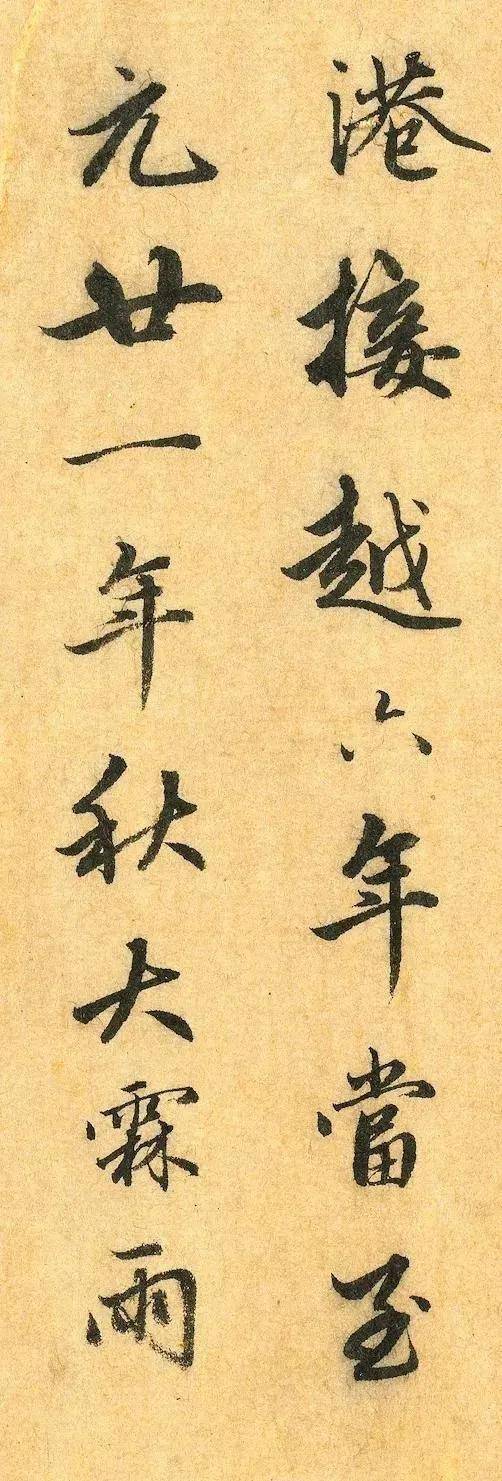 而在他的此帖行书《明肃楼记》中,赵孟頫写字特别会 “玩花样”:起笔时笔尖一落特干脆,像刀子出鞘似的利落;写中间笔画时换种方式,笔锋在纸中间走,线条又圆又顺还扎实;偶尔还会让笔锋侧着扫过去,带着股冲劲儿。刚硬的感觉和柔美的线条裹在一块儿,看着特别多变。