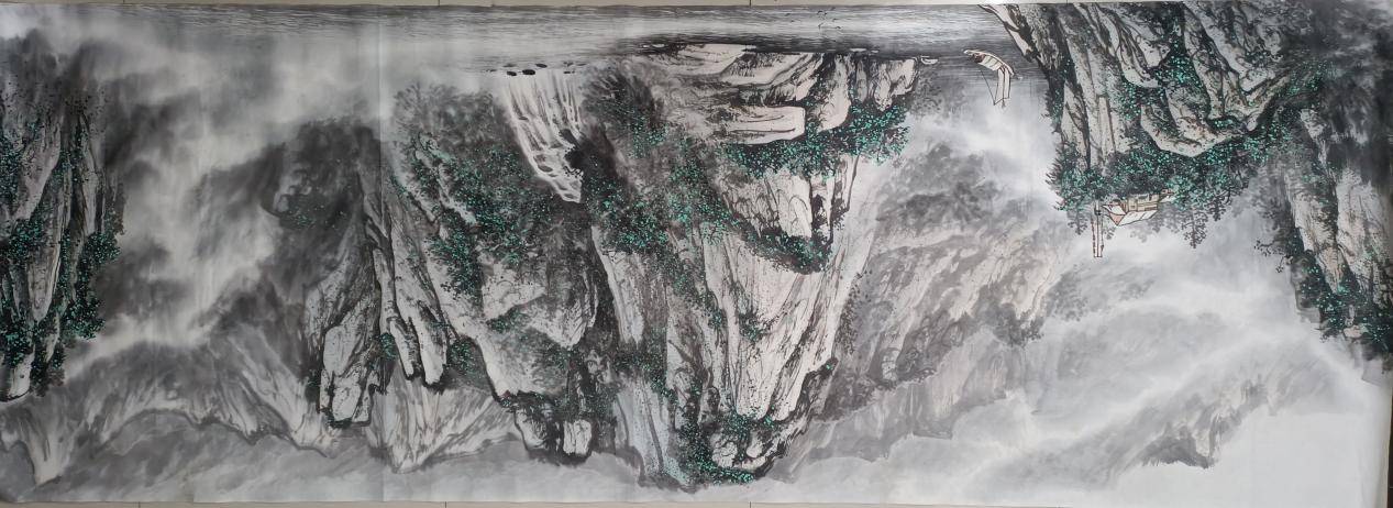 如今三幅长卷,勾勒出他艺术蜕变的清晰轨迹:从“为市场画”到“为心画”,从“技法锤炼”到“意境升维”,使写意本真得以坚守和彰显。这份“熬”出来的艺术——熬得过职业奔波、耐得住临古沉潜、扛得住写生艰辛,更离不开天赋加持。正是,无空间思维难成气魄,无人文通透难显沧桑幽情,无传统敬畏难守国画笔墨本真。