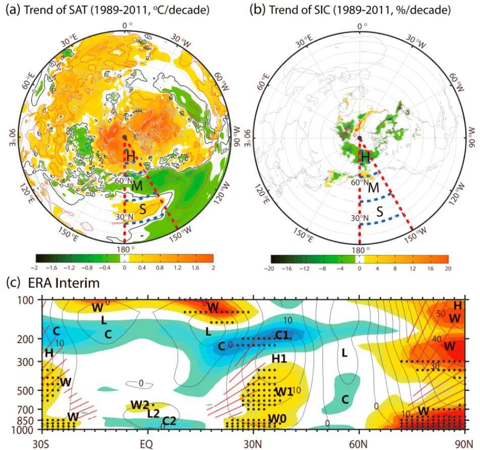 而且根据实测数据也可以看到这一幕,那就是——近半个世纪以来,北极地区年平均气温升温速率高达 0.61℃/10 年,是全球升温速率的 3.4 倍,其中冬季与秋季增暖尤为显著,分别达到 0.67℃/10 年和 0.87℃/10 年。