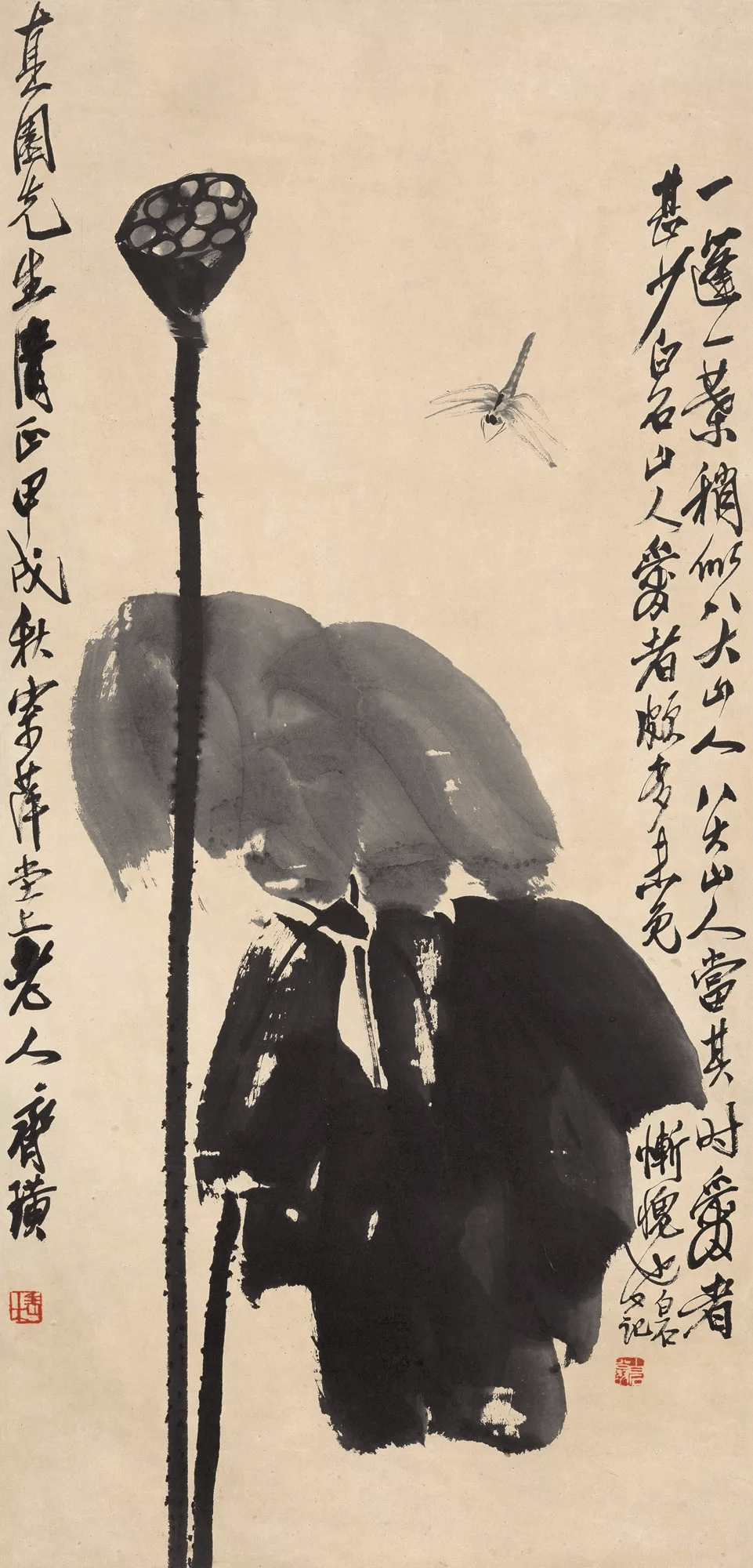 齐白石 黑荷蜻蜓 98.5cm×46.5cm 1934 年 纸本墨笔 轴 北京画院藏