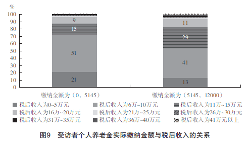 此外,税后收入水平也是影响个人养老金缴纳金额的重要因素。研究显示,在控制其他变量不变的情况下,税后收入较高的居民通常会缴纳更多的个人养老金(见图9)。这表明个人的经济实力在很大程度上决定了其对个人养老金的投入程度。