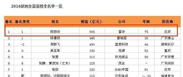 2020年3月16日,陈丽华以530亿元的财富跻身《2020胡润全球白手起家女富豪榜》第六位。她不仅一次性跻身前十,更曾在2016年以505亿资产登顶胡润女富豪榜,成为中国最富有的女性之一。因此,陈丽华无疑是一位非常“豪华”的富婆。
