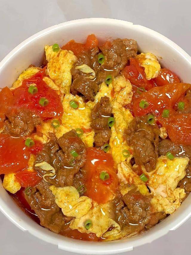 牛肉、番茄、鸡蛋、生抽、蚝油、淀粉