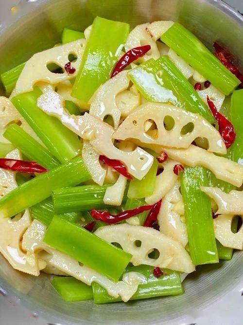 1. 莲藕去皮切片泡盐水,沸水加白醋焯熟;莴笋切条焯熟。