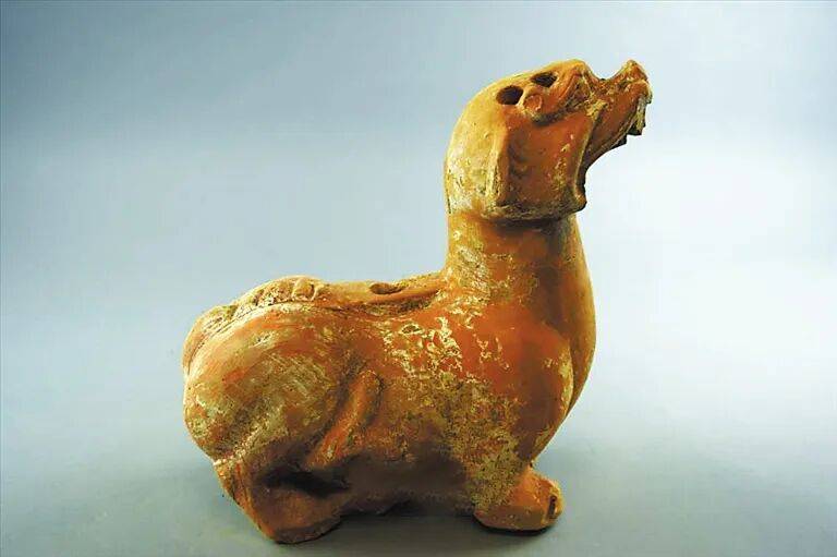 ▲出土于河南洛阳邙山的东汉陶兽型帐座。图源:洛阳古墓博物馆