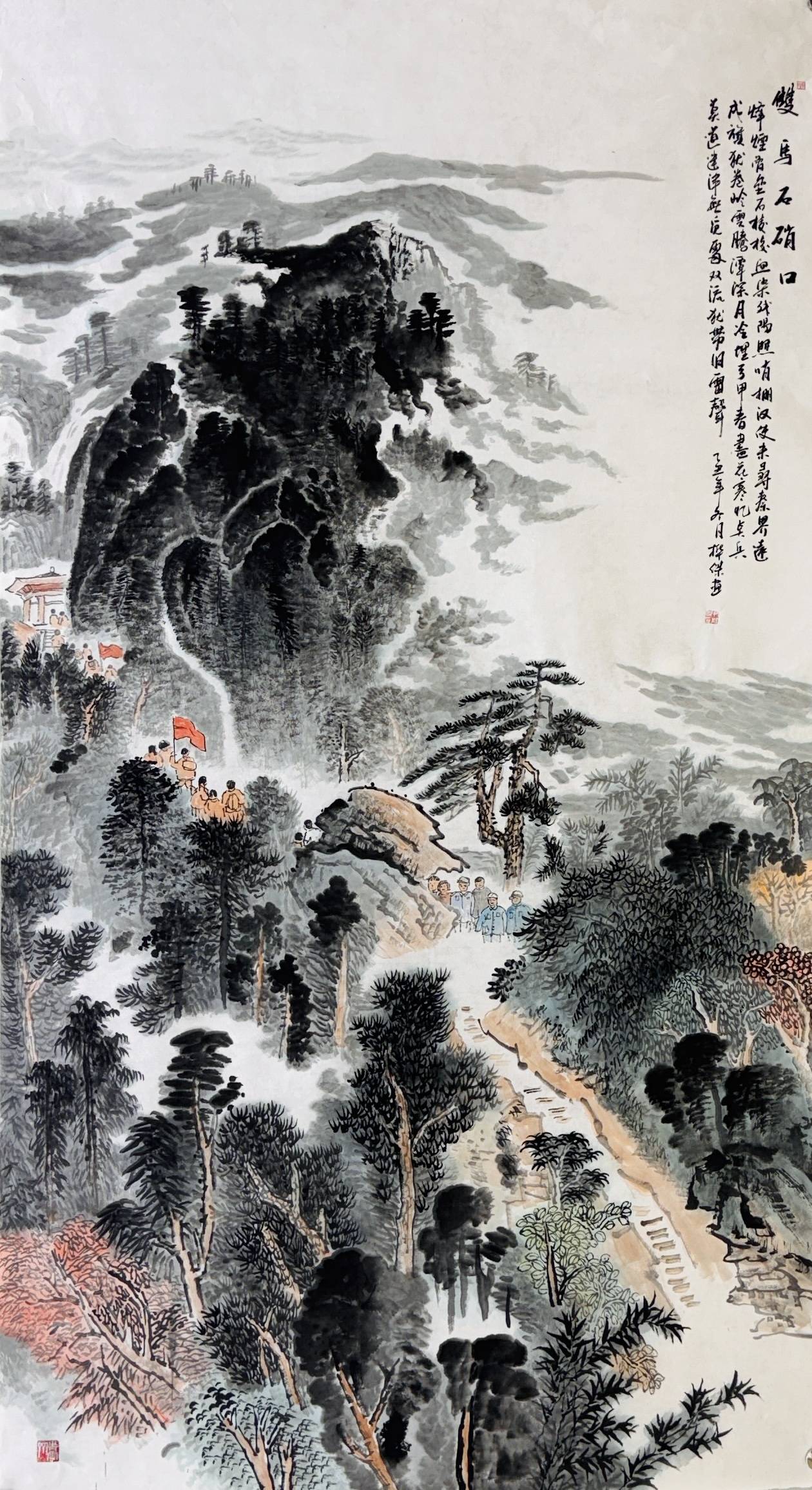 王旭东笔下的泰山从不孤立存在。《孔子登泰山而小天下》以山势的巍峨衬托圣人的渺小身影,崖壁的嶙峋褶皱暗含历史的沧桑,云霞的升腾流转隐喻思想的穿透力——儒家“天人合一”的哲思被转化为可感知的视觉韵律。他独创的“一山一水一圣人”符号体系,使齐鲁文化的精神血脉流淌在笔墨之间,让泰山成为华夏文明的立体丰碑。