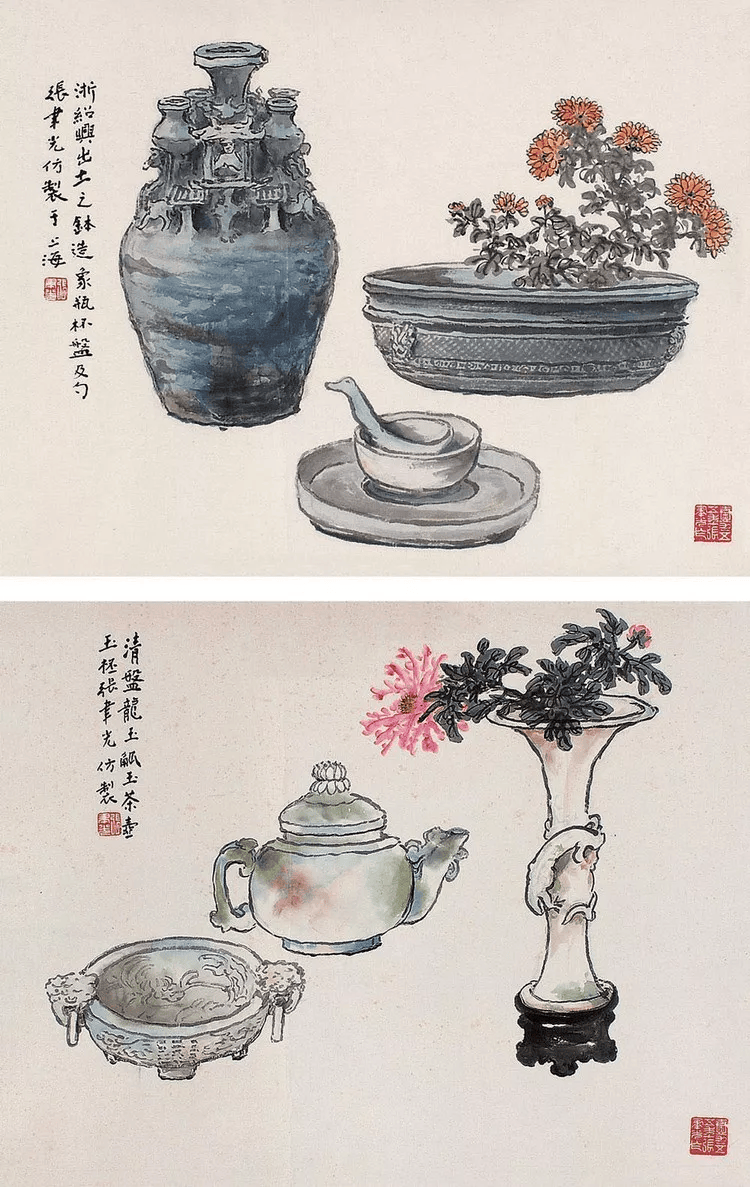 张聿光:(1885~1968)字鹤苍头,别号冶欧斋主。浙江绍兴人。著名美术家、画家。新中国成立后,张聿光被聘为上海中国画院画师。曾为中国美术家协会会员、美协上海分会理事、上海市文史馆馆员。传世作品有《黄山云海图》、《孔雀图》(藏上海中国画院)。出版有《聿光画集》二集(1935年)。