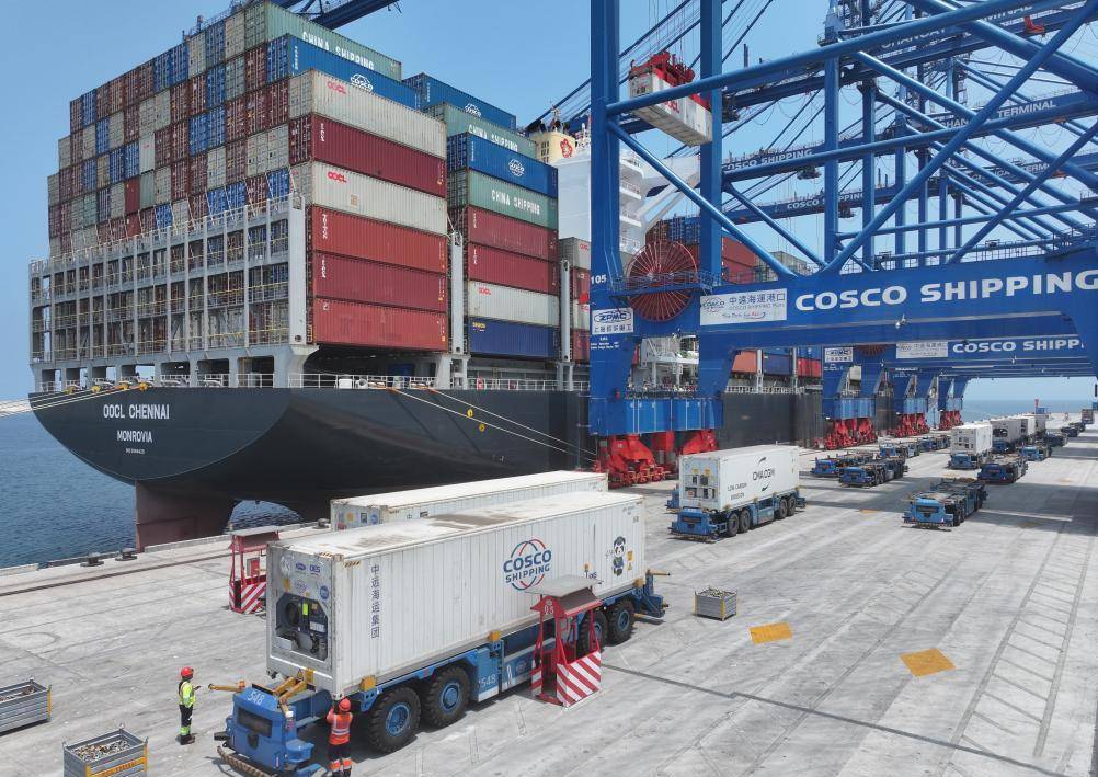 △秘鲁钱凯港,智能集卡装载到港集装箱。