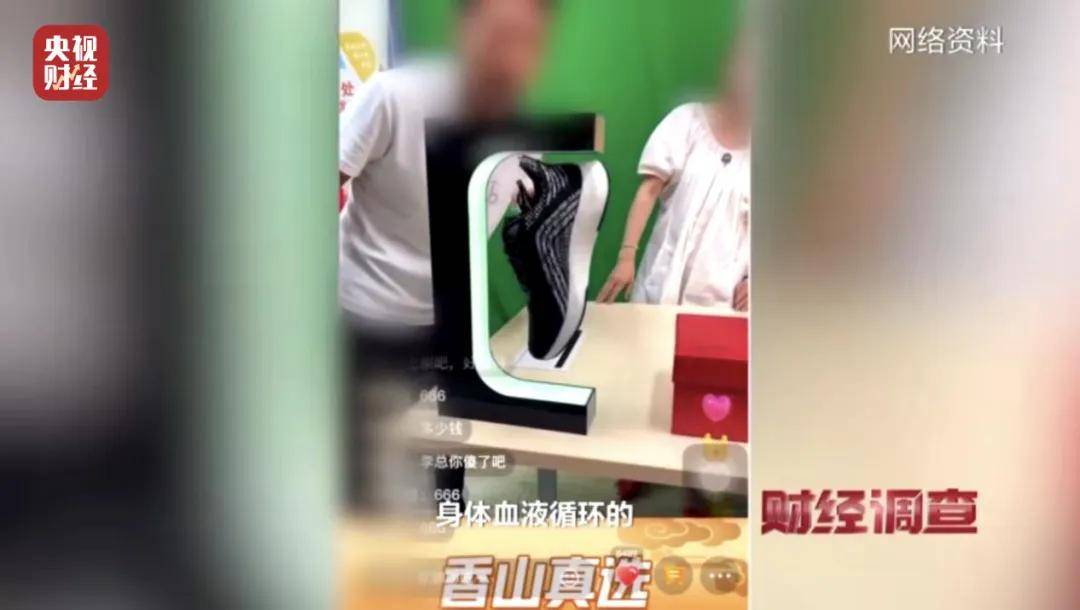 记者假称合作,进入了直播间。主播不断宣传一款磁悬浮鞋和鞋垫的独家专利及神奇功效。
