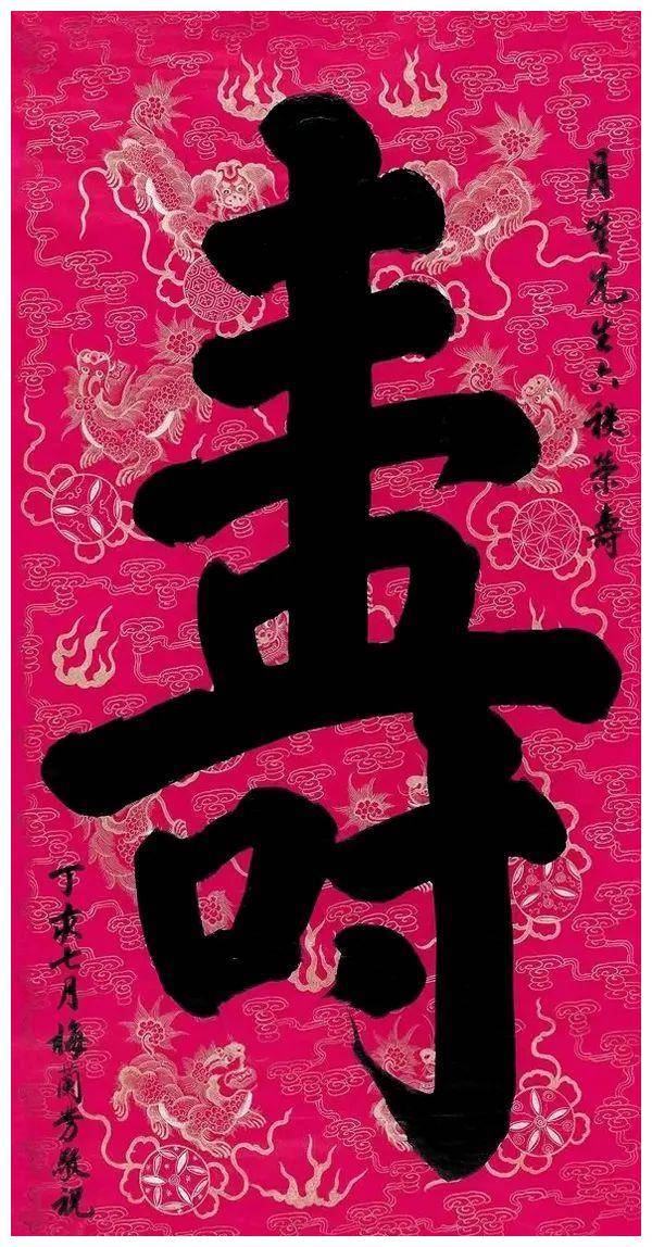 其中,一幅书法作品尤其引人注目。这幅作品由多位书法大师共同创作,作品中的每个寿字下方都标有不同书法家的落款,显示出每个字都是由不同的人书写的。梅兰芳、沈尹默、傅斯年、唐云、吴湖帆等数十位名人都参与了此次贺寿,堪称规模庞大,令人惊叹。