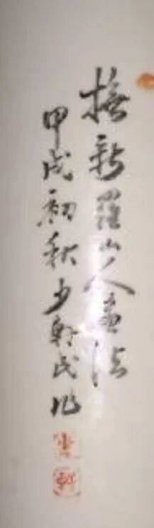 今年退休七年了,突然想起这幅画,找出来挂在卧床对面,朝夕相对,颇为自得。有一段时间,自己特别喜欢浅绛彩瓷,也收藏了几件,前天躺在床上面对此画,突然想起,浅绛彩瓷画家中,有一个人就字号“少轩”。跃起找手机百度,果然有简介:“少轩,生卒年不详,同治末光绪初第一批创作浅绛彩瓷的画师,作品活跃期自同治十三年(1874)到光绪十二年(1886)。擅花鸟,山水少见,人物更是鲜见。以画艺高超的作品,奠定了其在浅绛彩瓷画的社会地位。斋名为养心阁,云根书屋,署名多为少轩。”翻看了仅有的几件他的浅绛山水作品,心里在想,此画是否就是这个彩瓷画家“少轩”呢?