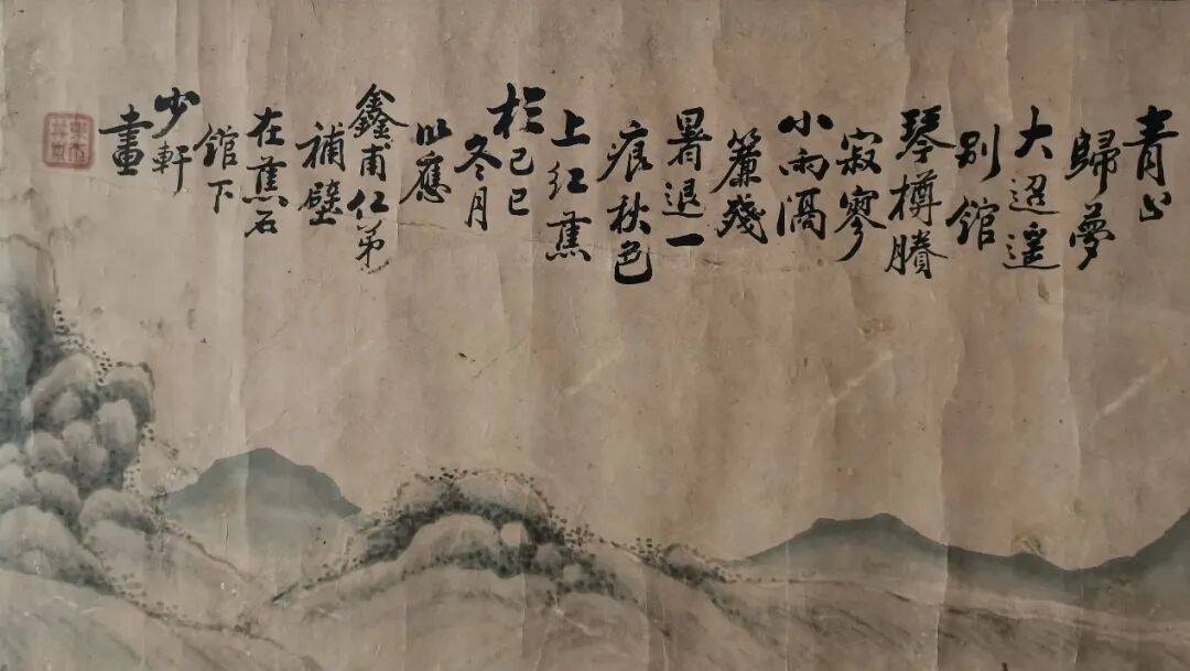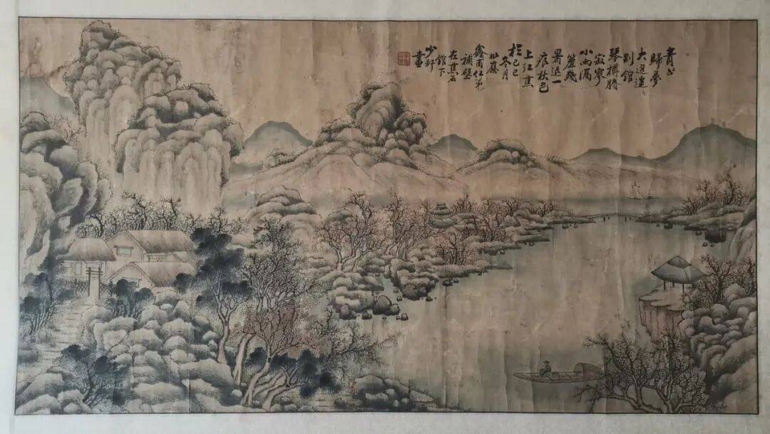 2007年,我从大连一个朋友手中,以贱值买下这幅画。画心纵60厘米,横112厘米。落款没有名字,也没有名章,只有一个“少轩”字号款。查了一下,古往今来书画家中,字号为“少轩”的,只有俞凤翰一人。此人为浙江海宁县人,道光十年解元,做过知县,擅山水画。介绍说得黄公望笔意,笔墨苍润。也就想当然地认为,应当就是此人的作品。欣赏了一阵,由于工作太忙,藏于画箱,就再也没有管它。