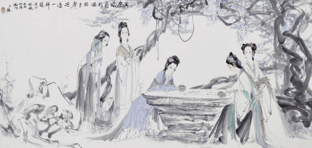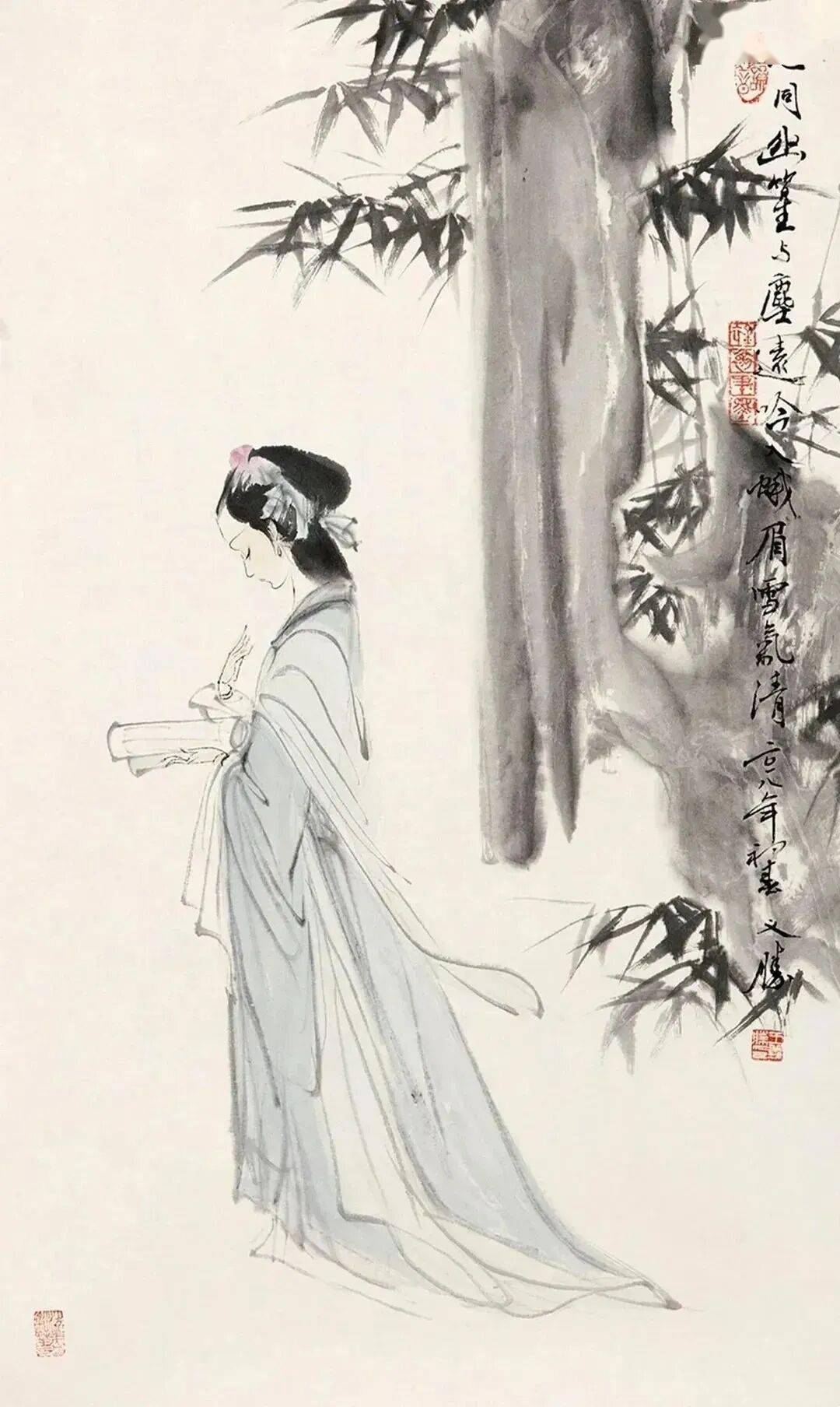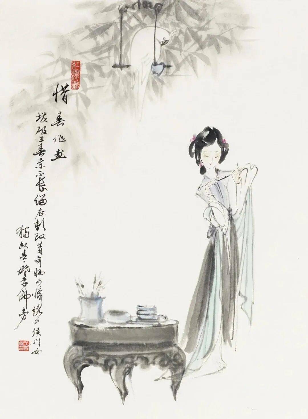 他创作仕女图,追求清新隽永、质朴出尘的美学气韵,要有含蓄的古意又应区别于古人。