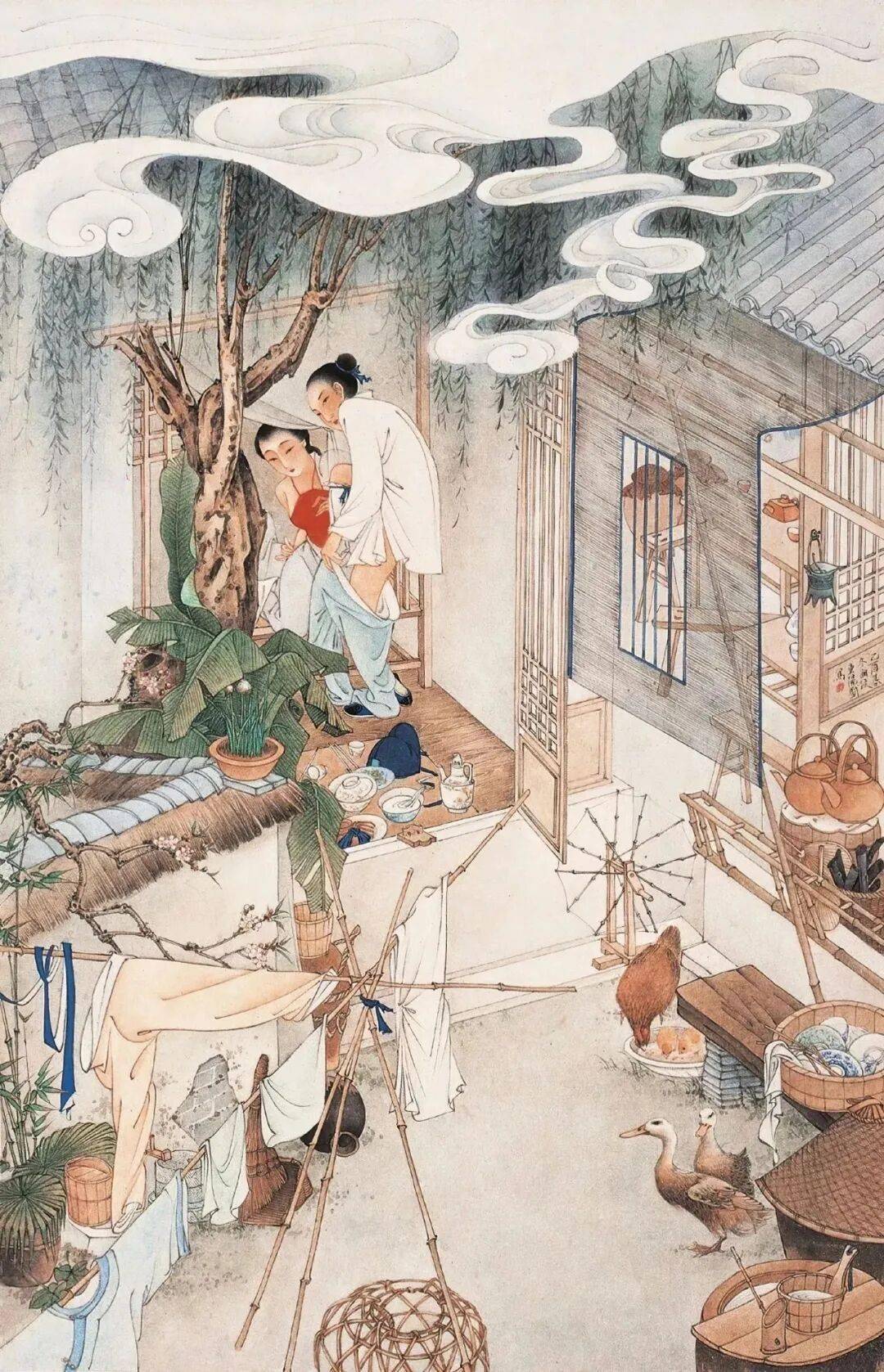 王义胜与他人协作创作的挂历《红楼梦》插图节选