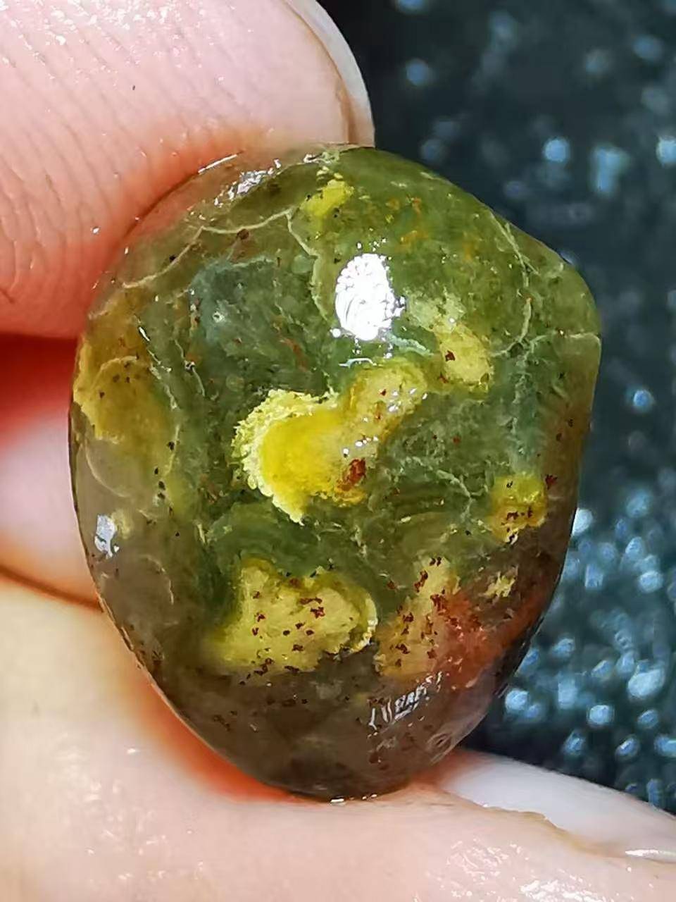 阿拉善玉,又称阿拉善玛瑙、阿拉善彩玉,产自内蒙古阿拉善盟这片神奇的土地。其主要成分为二氧化硅,颜色之丰富,令人目不暇接,红、绿、黄、蓝等多种色彩交织在一起,仿佛是大自然的调色盘。其质地细腻,颗粒小至39纳米,可与顶级翡翠相媲美。而地表料的天然造型,更是令人拍案叫绝。