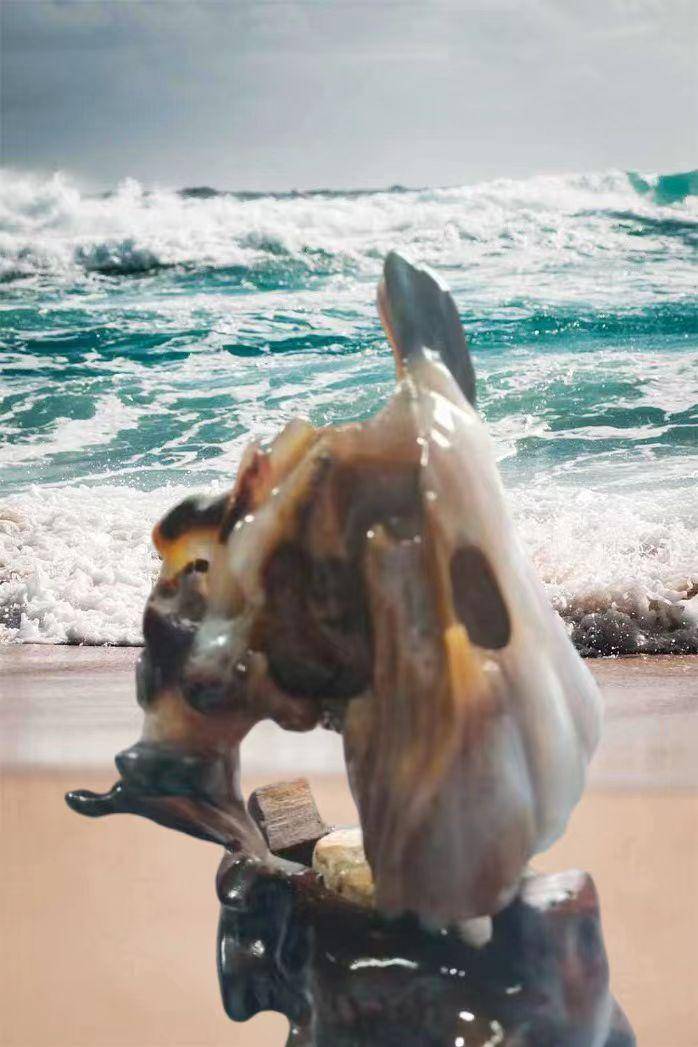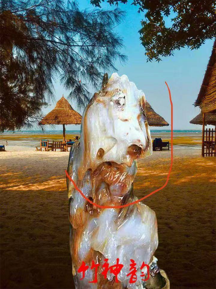 特别说明:本标准特指缅甸树化玉,因其他地区树化玉天然造型极为罕见。天然造型的石头,价值动辄百万,如阿拉善小鸡石,虽不足千克,却价值1.3亿元。而缅甸天然造型树化玉,有的重达千斤,少的也几十斤,如付小明收藏的尖嘴鱼树化玉,重达三十斤,相似度高达百分之九十五,足见天然造型之珍贵,故天然造型占比高达百分之七十。颜色方面,高冰种白色之美,远超红黄绿不透明者,切勿以成分论英雄。