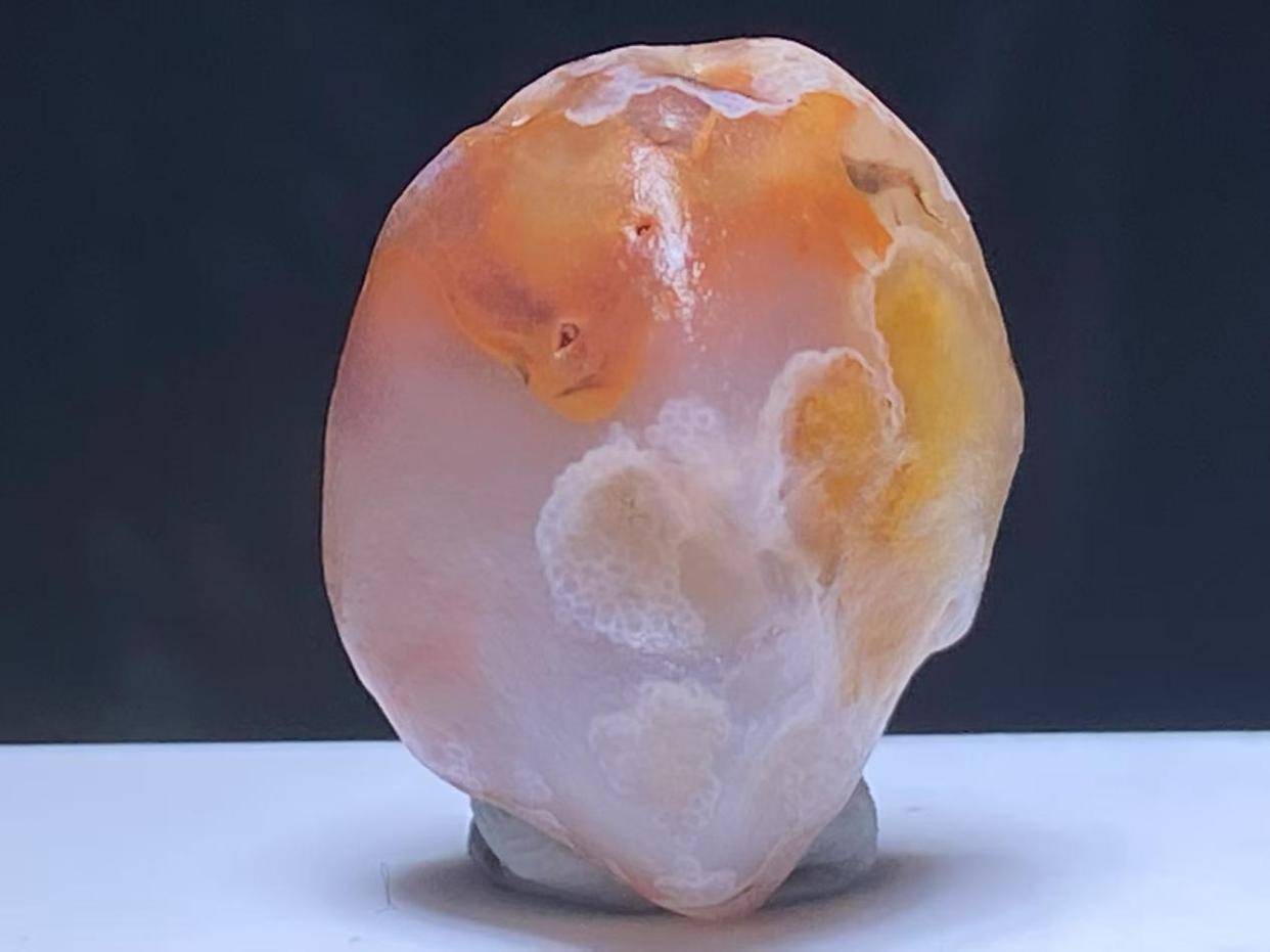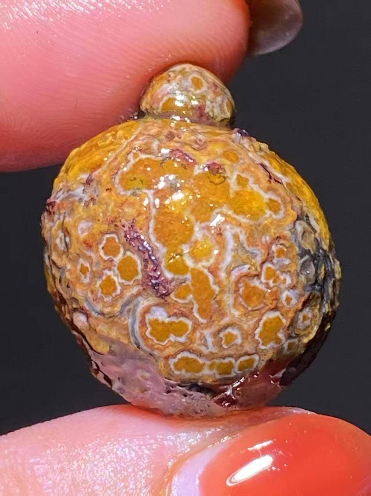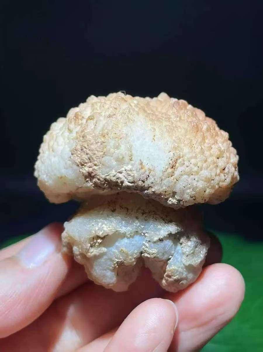 而阿拉善的戈壁玉,则是风与火的共舞。1.5亿年前,火山喷发将岩浆抛向天空,冷却后的玄武岩躺在戈壁滩上,接受烈日与狂风的双重洗礼。风沙像无数细小的刻刀,在岩石表面雕出流线型的凹槽,仿佛大海退潮后留在礁石上的波纹。最奇妙的是那些糖色玛瑙层——它们本是岩浆中的气泡,却在漫长的岁月里被铁元素染成蜜色,与洁白的玉质基底形成渐变,如同晨曦中融化的焦糖,自然得令人心醉。