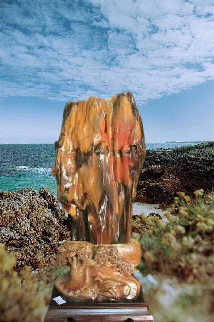 树化玉的天然造型之稀有与高价值,无疑是收藏界的一大亮点。那些大型且具象的造型,更是稀缺中的稀缺。它们的形成,深受地质作用的影响,概率之低,犹如大海捞针。例如,“伟人”树化玉价达16.8亿。缅甸马圭省出土的“青帝”,这尊长约30.5米、根部周长6米的巨型树化玉,树干形态完整,宛如天成。在2017年的昆明国际石博会上,它以10亿人民币的天价标出,最终荣幸地被国家收归国有。再如阿拉善地区的地表树化玉,其形如“跃起的鱼”,尾巴灵动、树皮纹理清晰可见,价格从2024年3月的28万飙升至北京石展的88万,其升值潜力,可见一斑。