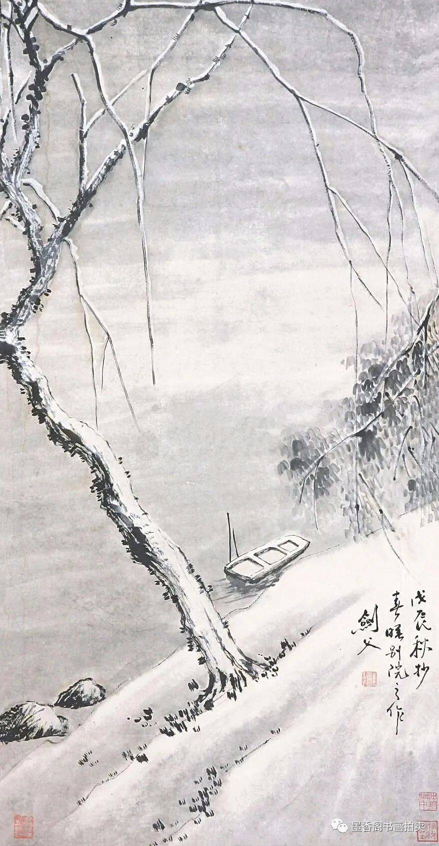 其作品笔法横砍竖劈,干笔飞白,于秀逸中见刚劲,于数笔中见传神,但仍与传统绘画有着较为强烈的差别。