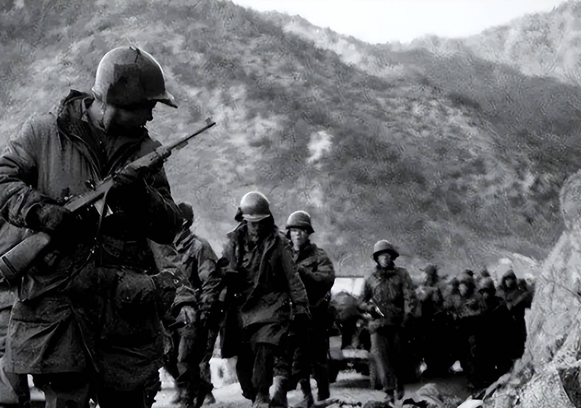 1951年的朝鲜战场,泥泞的山路和乱石丛林中,志愿军的战士们一边艰难跋涉,一边警惕着身后的敌人。他们的脚步沉重,因为连续作战和严寒的冻土已经让他们疲惫不堪。身上的棉衣破旧不堪,枪口油光闪闪,眼睛虽被血丝布满,但依然锋利如刀。