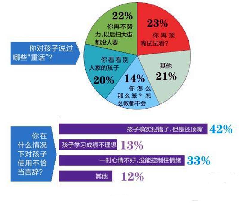 南宁晚报发布的一个关于“父母是否使用语言伤害孩子”的调查显示,接受问卷调查的2000多位父母中,居然有60%以上的父母,或多或少因言辞不当伤害了孩子心灵。