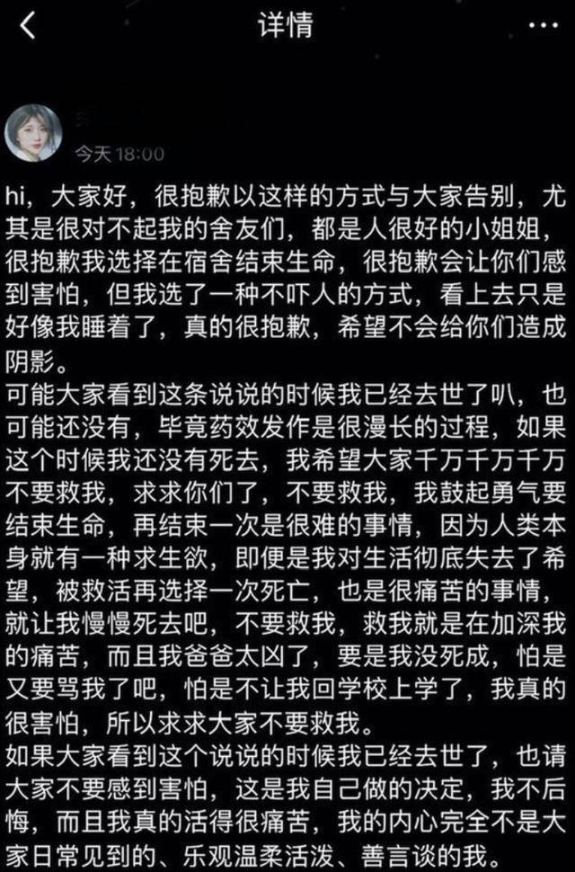 而大家看到,原本可以拥有美好人生的女孩,选择早早结束自己的生命,感到十分痛心的同时,也因她留下的遗书引发深思。