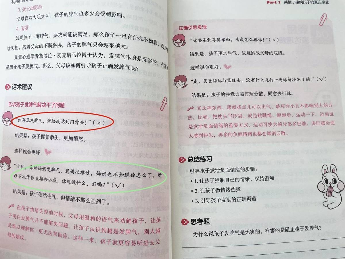 关于孩子的13种常见情绪,到底如何跟他说,能达到怎样的效果,书中都有明确介绍。还有,那些常见的错误话术,就是我们家长总挂嘴边的。看过这本书后,别再说了,伤了娃,自己还不知道呢!