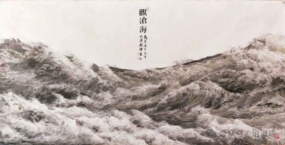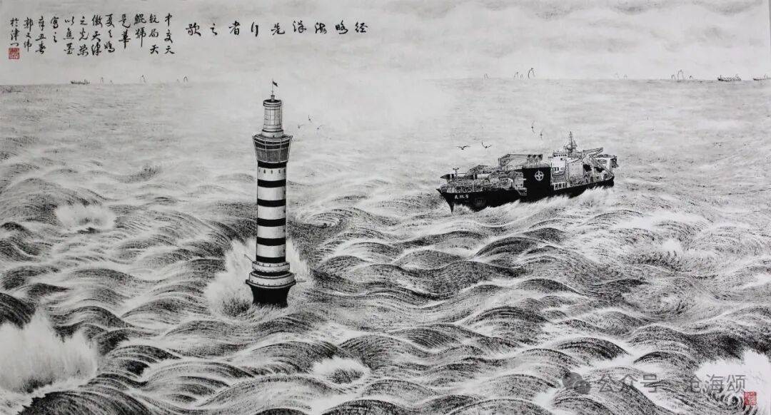 “推陈出新”的基础,在于对“陈”的深刻理解与尊重,其目标则在于“新”的勇敢开创与确立。中国绘画史,从某种意义上说,是一部以陆地文明为中心的“山水画史”。历代大师们创造了表现山川、河流、树木、屋舍的无比丰富的笔墨程式与美学体系。然而,对于海洋这一更为浩瀚的客体,传统绘画却长期处于“失语”或“语焉不详”的状态。除了一些程式化的“水图”或作为点景的江湖,海洋从未成为被主体性、系统性表现的对象。这是中国画题材上一个巨大的历史性空白。