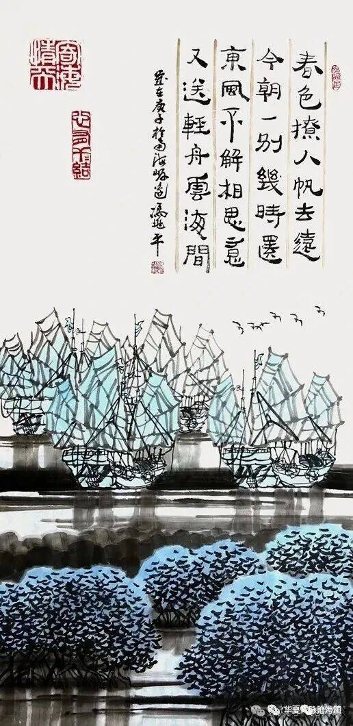 3.“海上丝路”的和平之美。 他许多作品的主题,关联着古老而又崭新的“海上丝绸之路”。他笔下的航路,不是殖民与掠夺的通道,而是友谊与文明的桥梁。这赋予了其海洋画作以和平、合作、共赢的时代内涵,与西方海洋绘画中常见的征服与占有主题形成了鲜明对比。