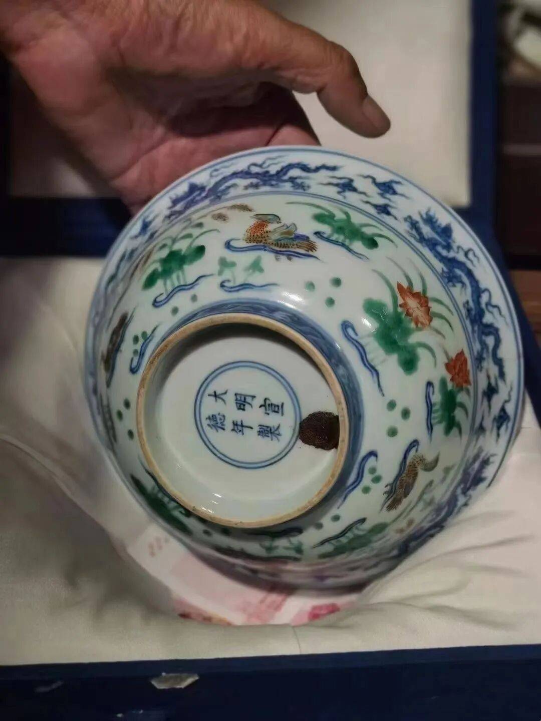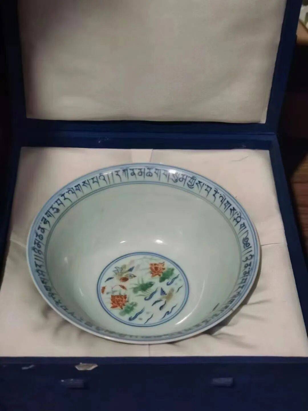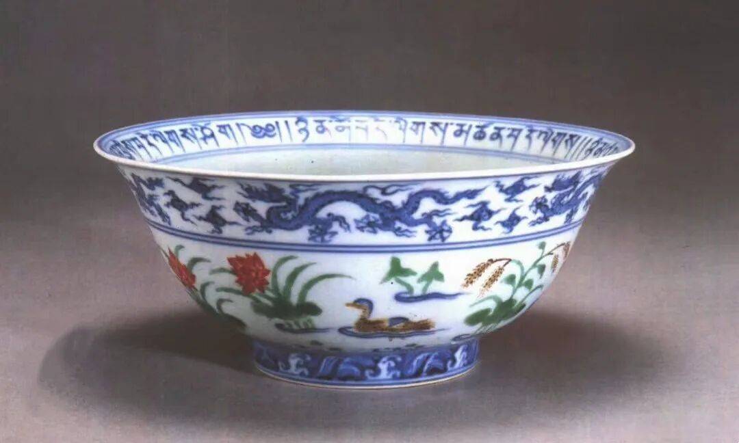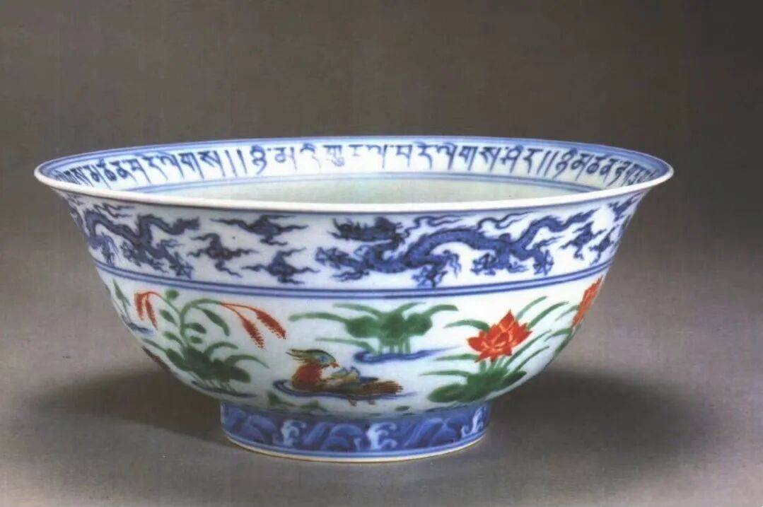 当时人们认识还不到位,多认为这件东西有问题。1988年在御窑厂遗址发现了两片与这个碗纹饰一模一样的瓷片,带有“宣德年制”的款,且位于宣德时代的地层,这就证实了萨迦寺这个碗没有问题,说明中国的斗彩瓷器从宣德时便开始烧制了,所以说这是一件改写中国陶瓷史的器物。