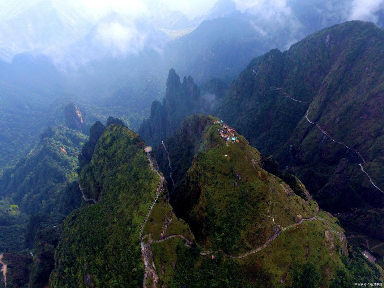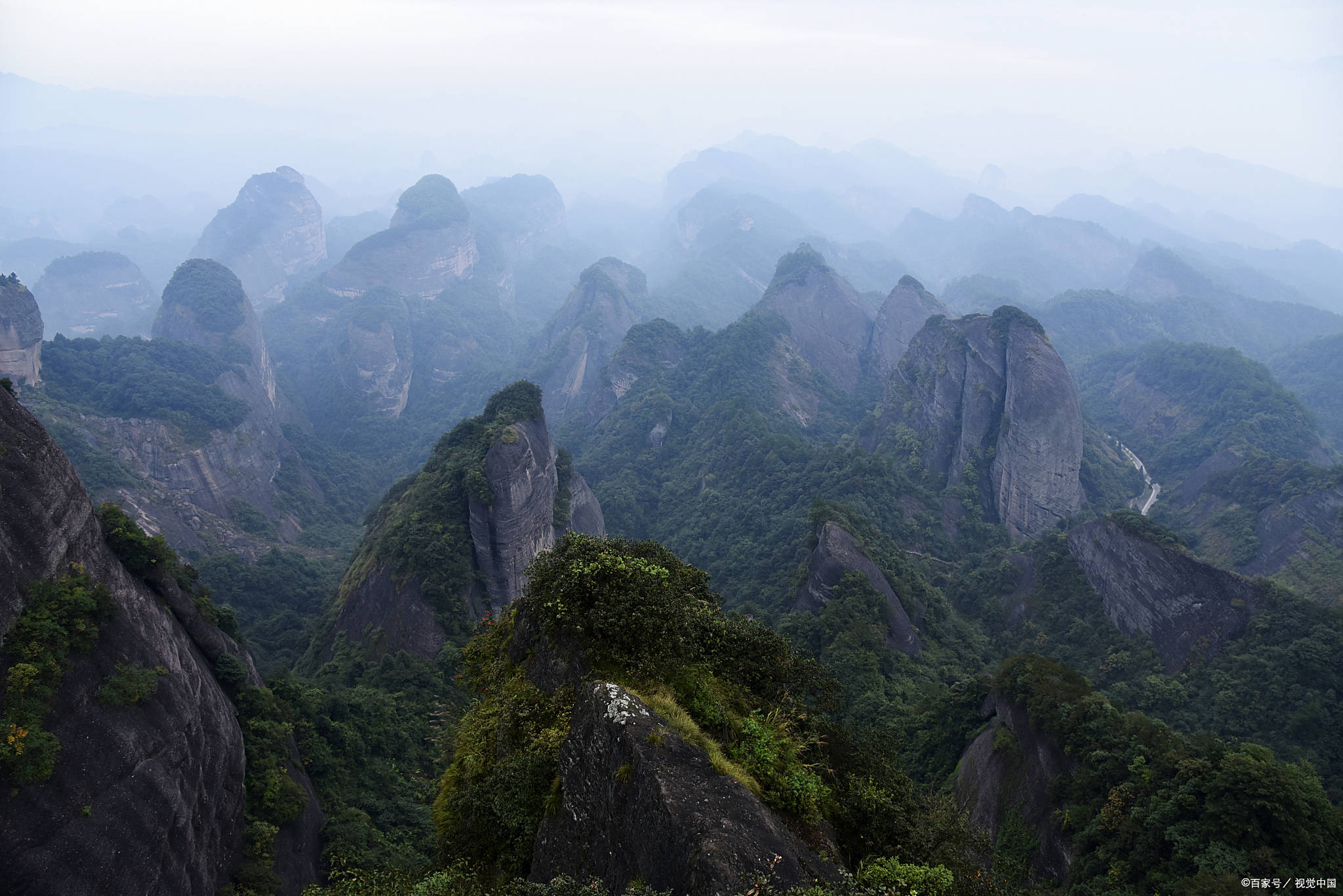 04 九嶷山花岗岩峰林,傲立于群山之巅却只有三根石柱的绝色峰林九嶷山属五岭之一的萌渚岭,主体本为喀斯特地貌,然而九嶷山的主峰区域却有花岗岩出露。原来这是南岭地区燕山期花岗岩(岩浆)侵入石灰岩地层随着造山运动“拱出”地表的产物。