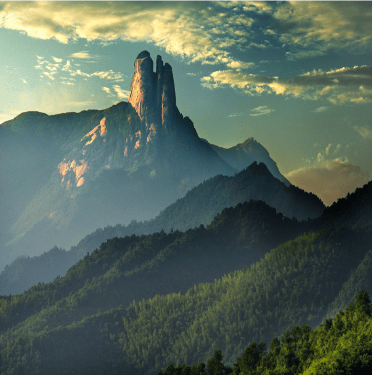 莽山五指山景区“金鞭神柱”最为奇特,上近似方形下近似圆形,顶部如锥,高达200米直径仅20米,屹立于云海之中。气势雄伟,险峻异常,令人震撼,堪称莽山“镇山神柱”。