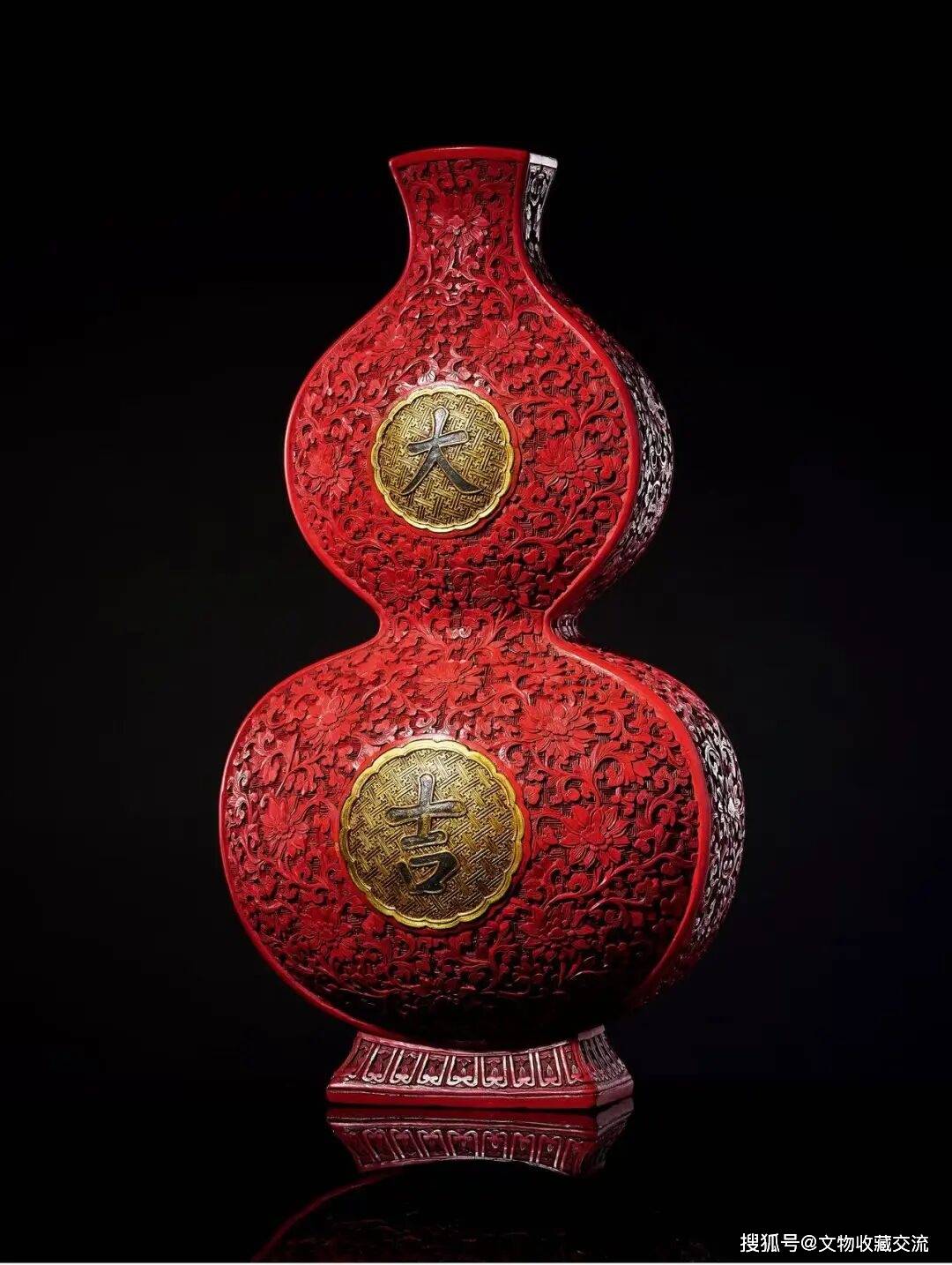 因此,这件剔红大吉葫芦瓶不仅延续了以物寓意的古老传统,更以其繁复精湛的雕工、浓艳鲜明的漆色与多种工艺的结合,成为一件既承载吉祥寓意,又彰显清代宫廷美学高度的匠心之作。