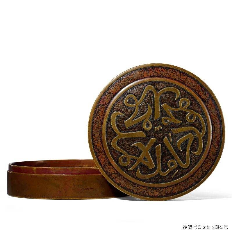 盒面以两条弦纹围成开光,均以珍珠锦纹为地,外缘衬缠枝莲纹,内饰阿拉伯文唯一真神可兰经文句,文字流畅优美,有刀笔合一之功,非正德宫廷不能为之。
