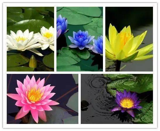 睡莲,多年生水生草本,花大形、美丽,浮在或高出水面,白天开花夜间闭合,花瓣白色、蓝色、黄色或粉红色。