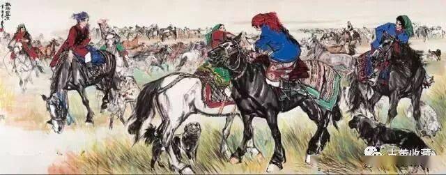 画面描绘了七位女性人物、九条牧羊犬、七十多匹骏马,如此众多的表现对象,画幅尺寸达到惊人的46平尺。如此精彩的巨幅作品在黄胄的绘画生涯是非常少见的。