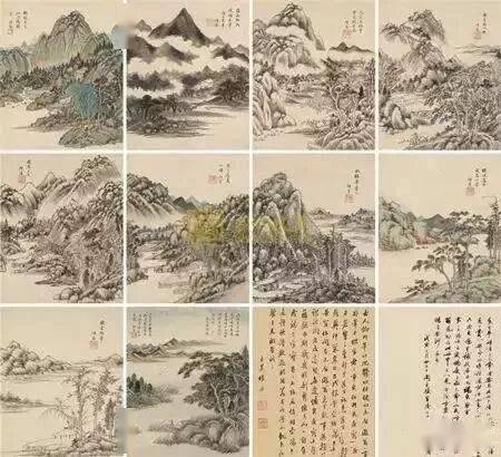 此册杂临米友仁、赵孟、黄公望、吴镇、倪瓒、王蒙诸家笔意。如此煌煌十开大册,且品相如此完好,实属难得。