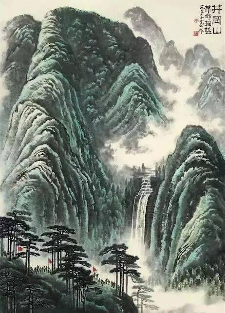 此幅《井冈山》创作于1976 年,是李可染为日本“唐人馆”创作的名件;是李可染变“写生”为“意构”,化“写境”为“造境”的典范之作;亦是新中国革命圣地山水的经典巨制。