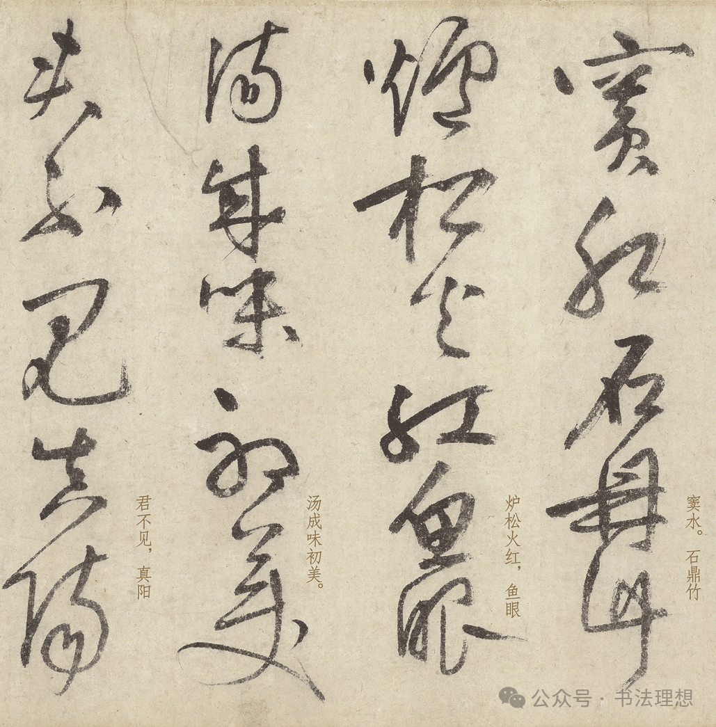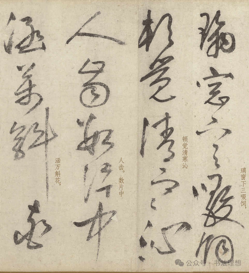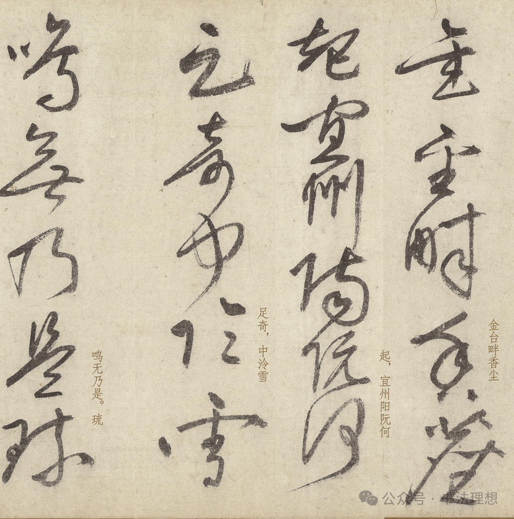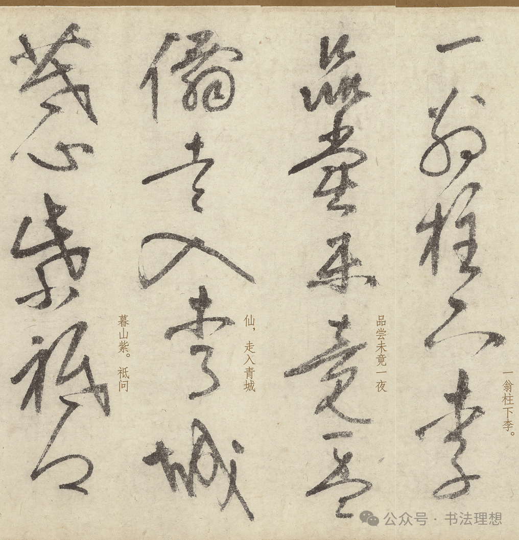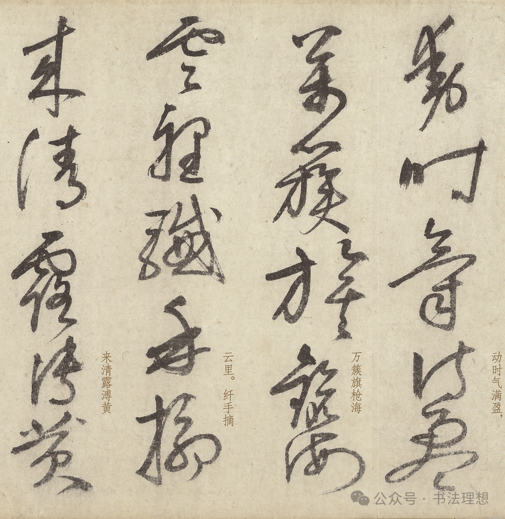 全卷洋洋洒洒、自然利落,这才是“神级境界”的草书。起笔多藏锋入纸,收笔则缓出回锋,避免急扫。行笔中融入篆隶“屋漏痕”质感,横画、撇画中段常带细微顿挫,并非一笔直下,既显劲挺又不僵硬,区别于祝允明草书的迅疾流畅。