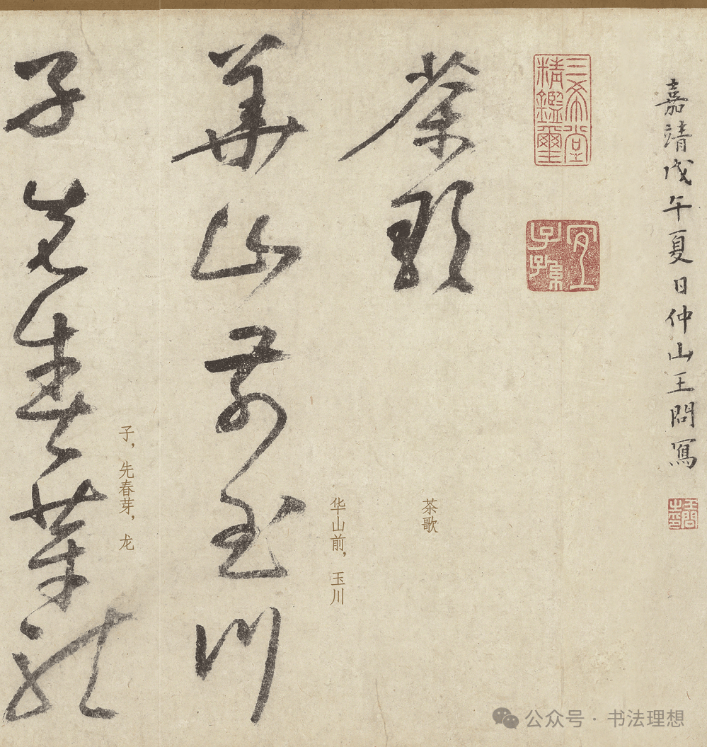 王问的字名盖当世,时人称赞:“法出魏晋,笔源盛唐,草法精绝,虽祝京兆、王雅宜不逮其右。”意思是说他的草书法度纯正,直入晋唐,即使是祝允明、王宠也不如他。王问传世作品不多,《煮茶歌》是其扛鼎之作,正因书写得精妙,被进献宫廷。