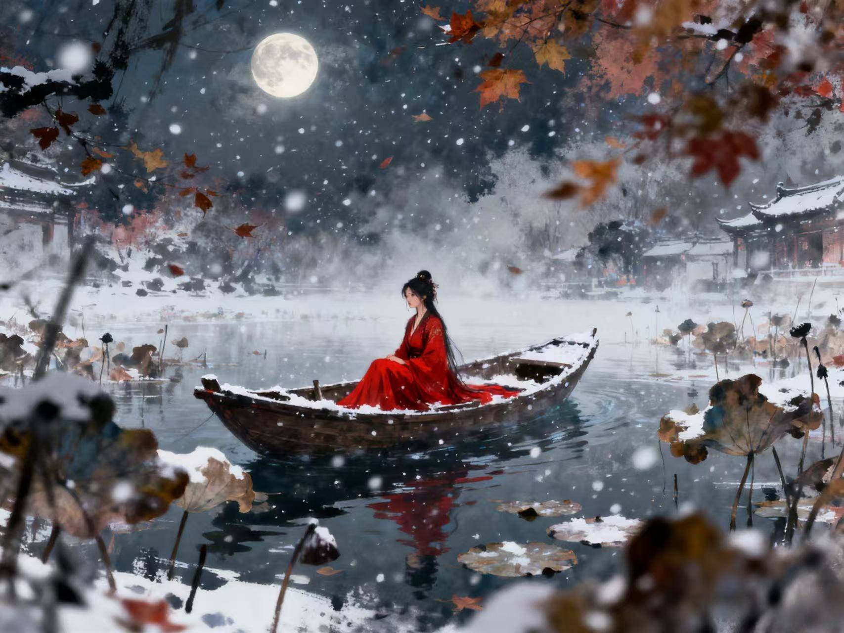 “满船清梦压星河” 的浪漫之景,与 “烟水茫茫失故坡” 的悲凉形成强烈反差,道尽天涯游子的思乡之苦;“壁上残诗留客思” 的牵挂,将思念的绵长刻画得入木三分。那份清愁,如秋夜的湖水,深沉而悲凉,在梦境与现实的交织中悄然涌动,让人在感念其浪漫的同时,也感受到那份漂泊无依的沉重。