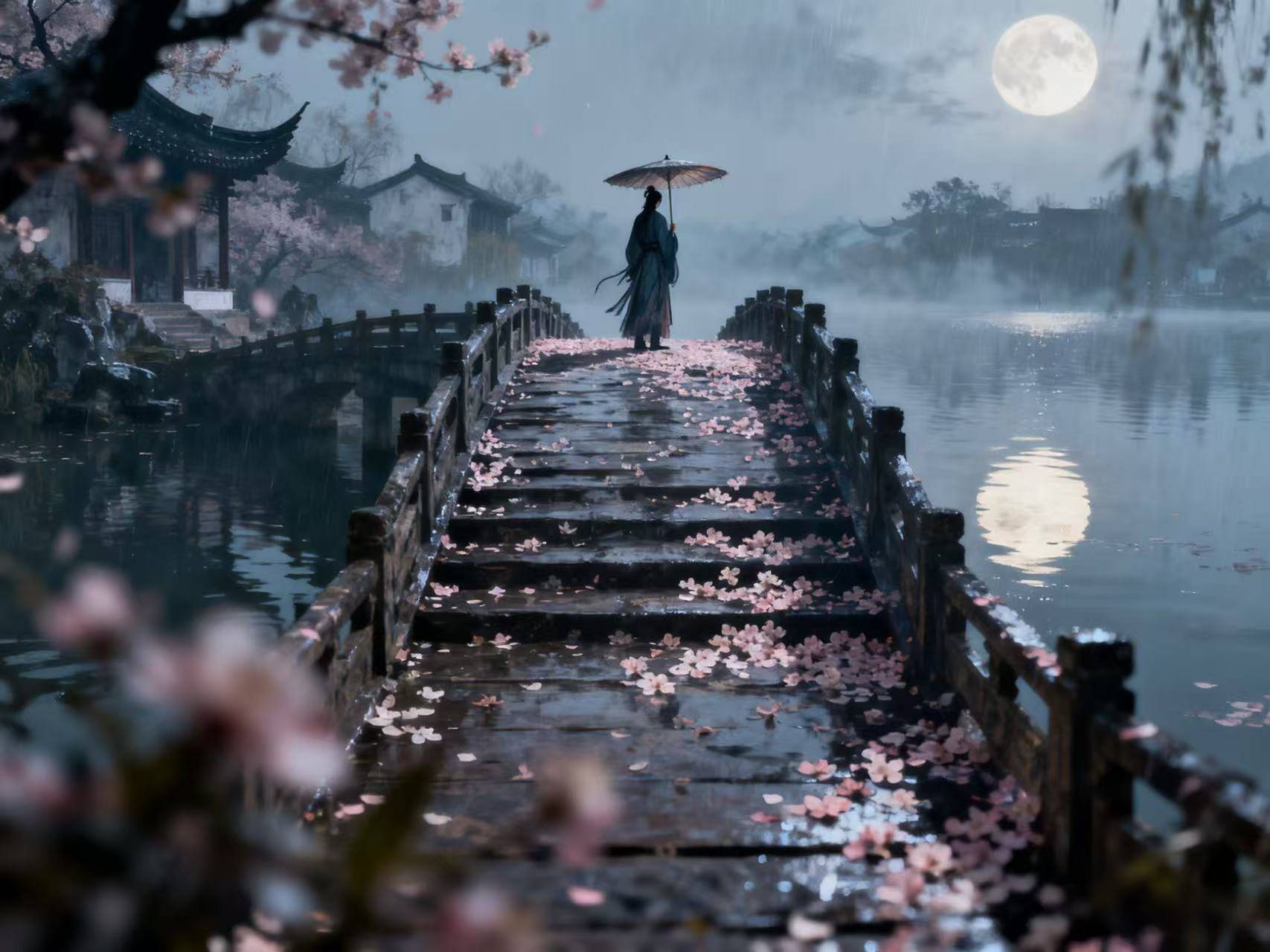 “人面桃花相映红” 的美好,与 “人面不知何处去” 的失落形成强烈反差,道尽错过的残酷;“壁上题诗痕已淡” 的沧桑,更衬出思念的绵长。那份清愁,如春日的细雨,缠绵而悲凉,在回忆与遗憾的交织中悄然涌动,让人在感念其深情的同时,也感受到那份错过便是一生的沉重。