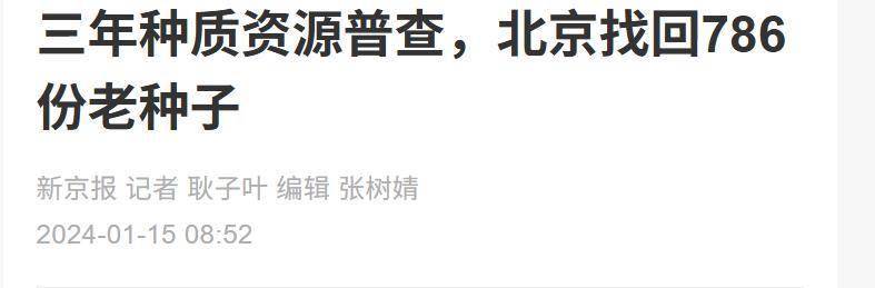 信息来源:新京报 三年种质资源普查,北京找回786份老种子 2024-01-15