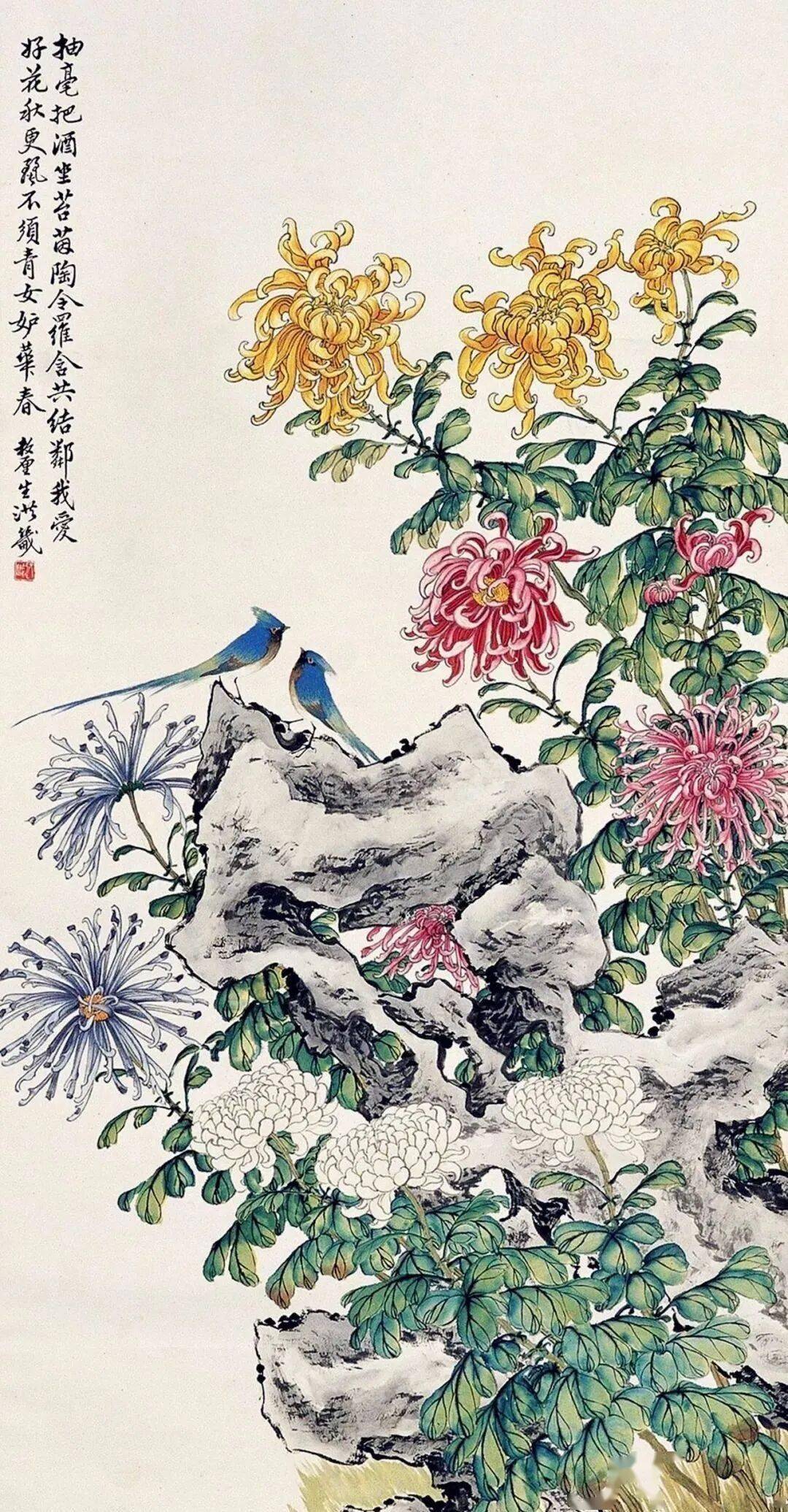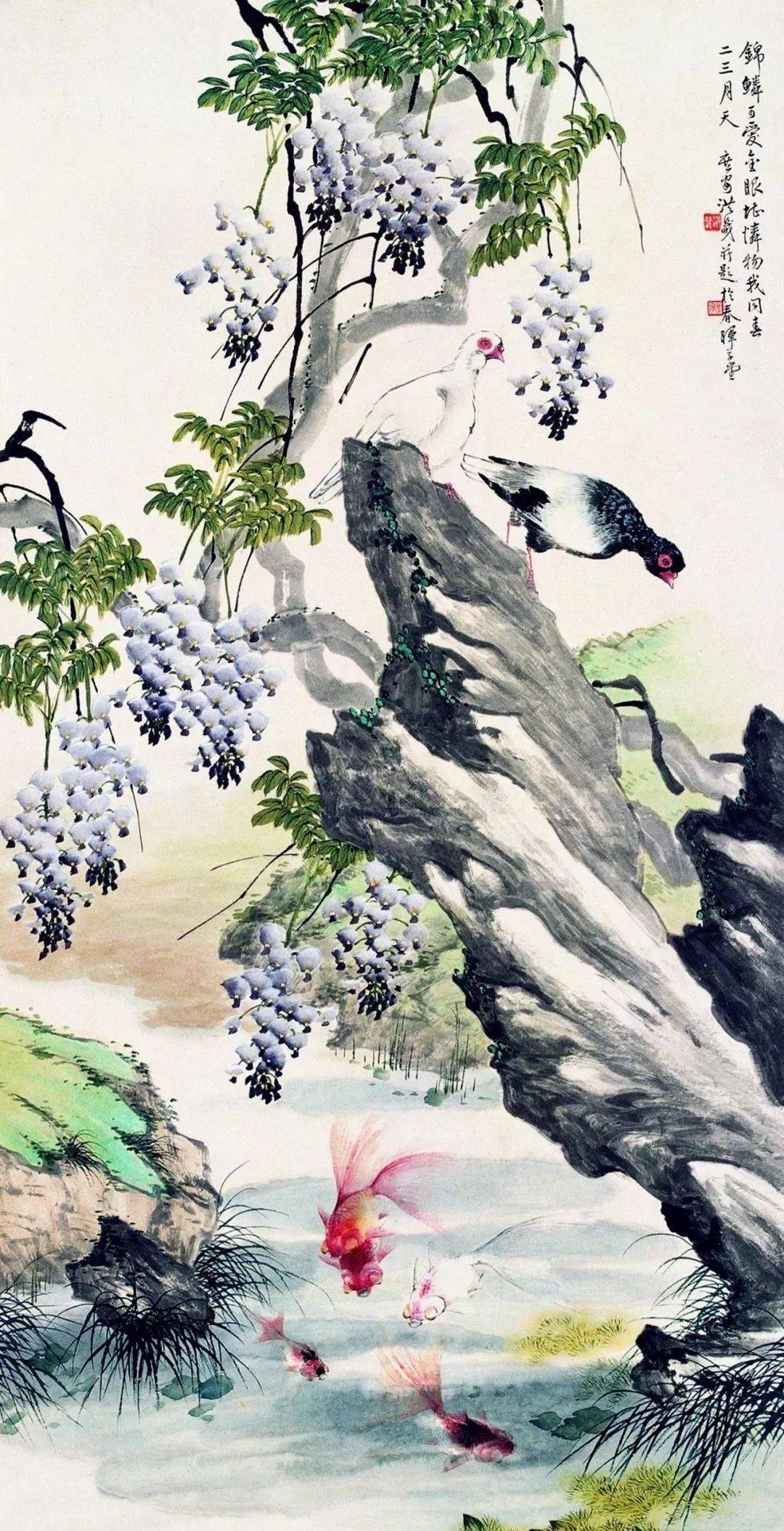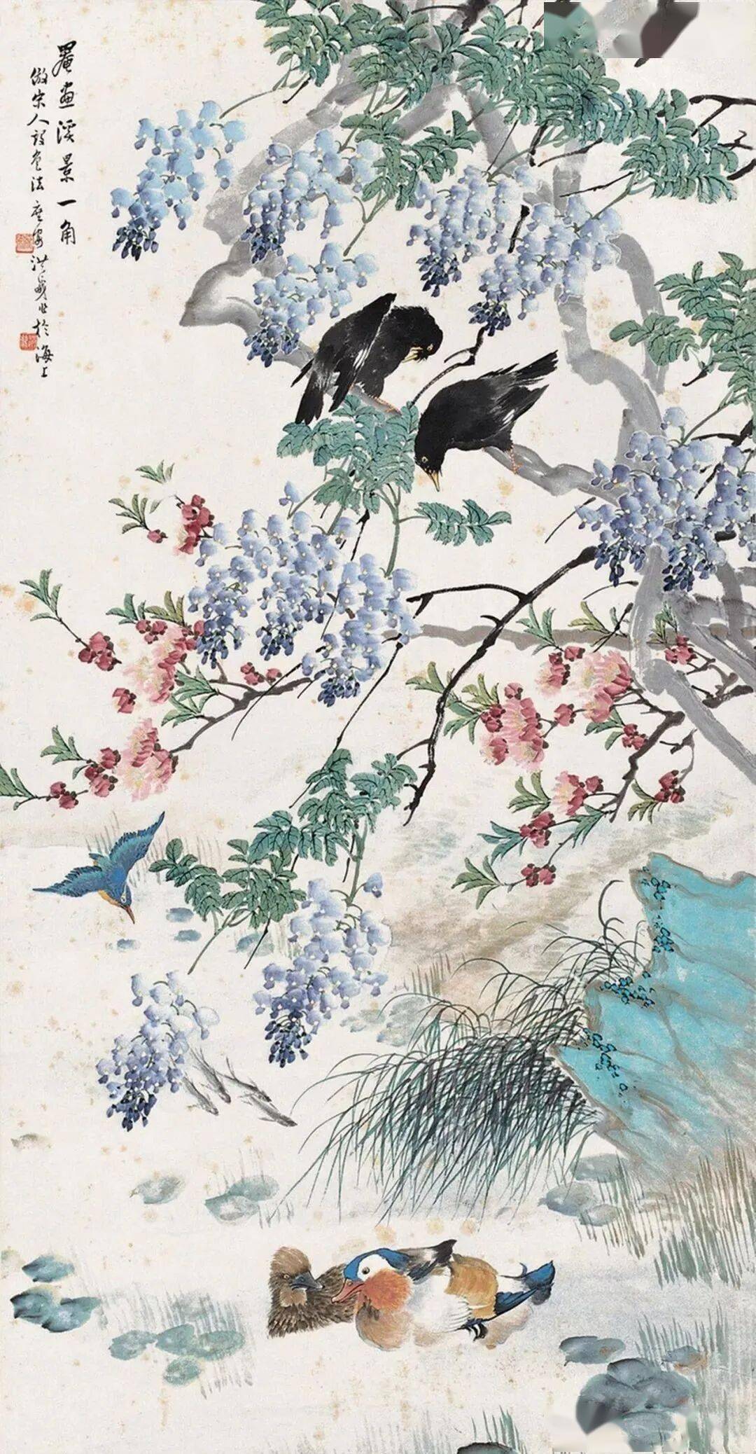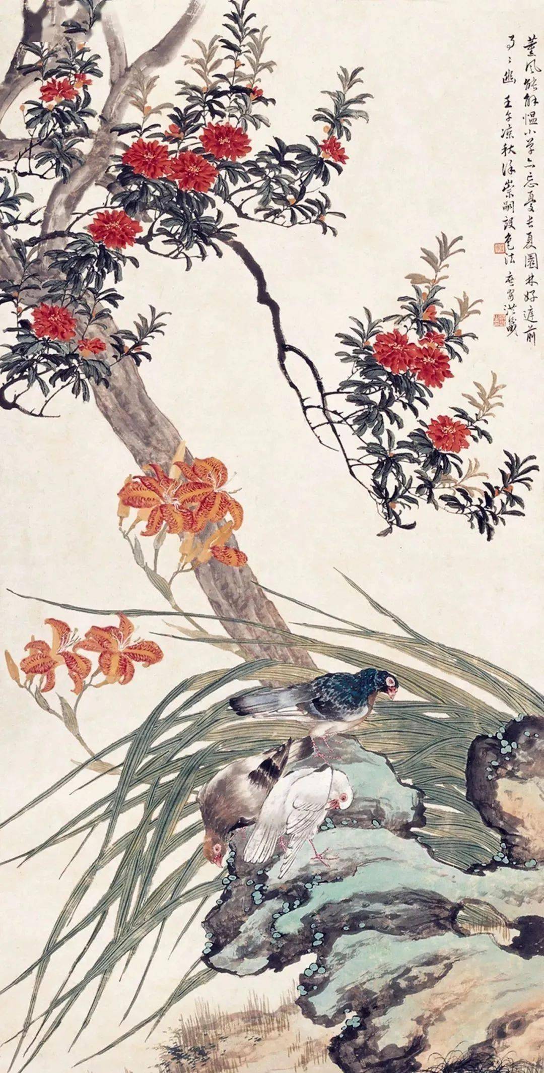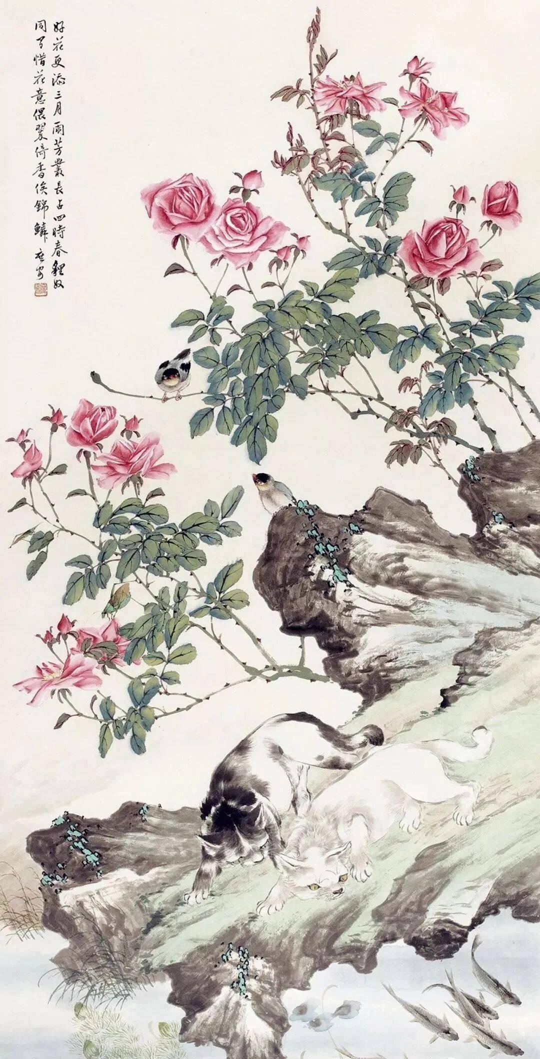 他设色浓而不俗,画面隽逸清丽,愣是把小写意画出了工笔的效果。因此其笔下的花石草木、翎毛犬马看似精雕细琢,其实逸笔草草,但一样真实生动,这是他的独特之处。
