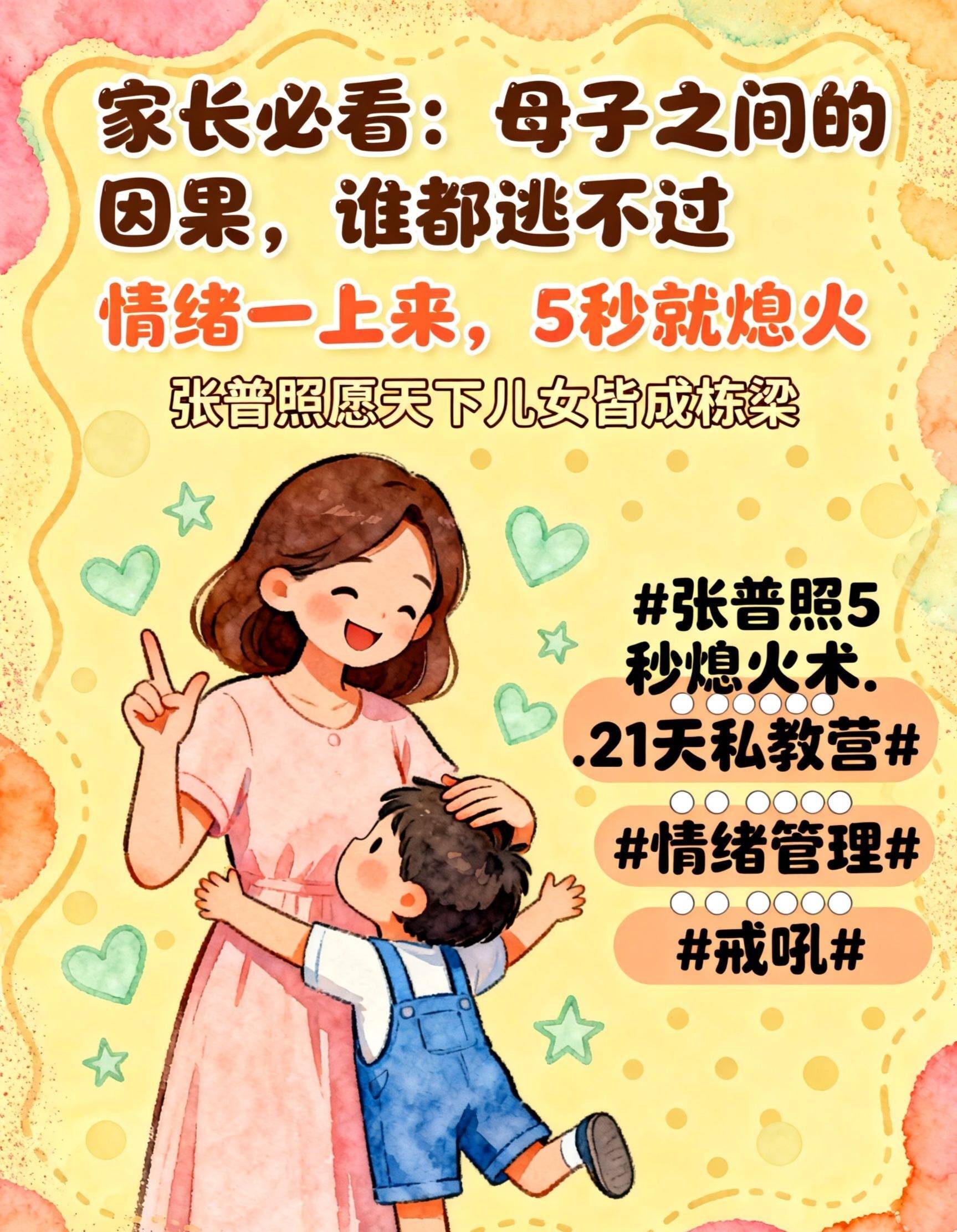 所以,我劝你,不要再在孩子的“果”上浪费时间了。你要修的,是你自己那颗心,是你在那5秒钟内的定力。“张普照5秒熄火术”,就是你修这颗心的“方便法门”。它让你从“畏果”的凡人,走向“畏因”的智慧父母。这是你为人母的修行,也是你给孩子最好的、可以传承下去的“德”。