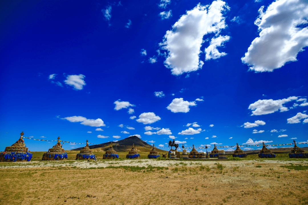 4.世界最大的敖包群落:乌拉特国际敖包文博园,99座敖包群获得了吉尼斯世界纪录认证,气势恢宏。