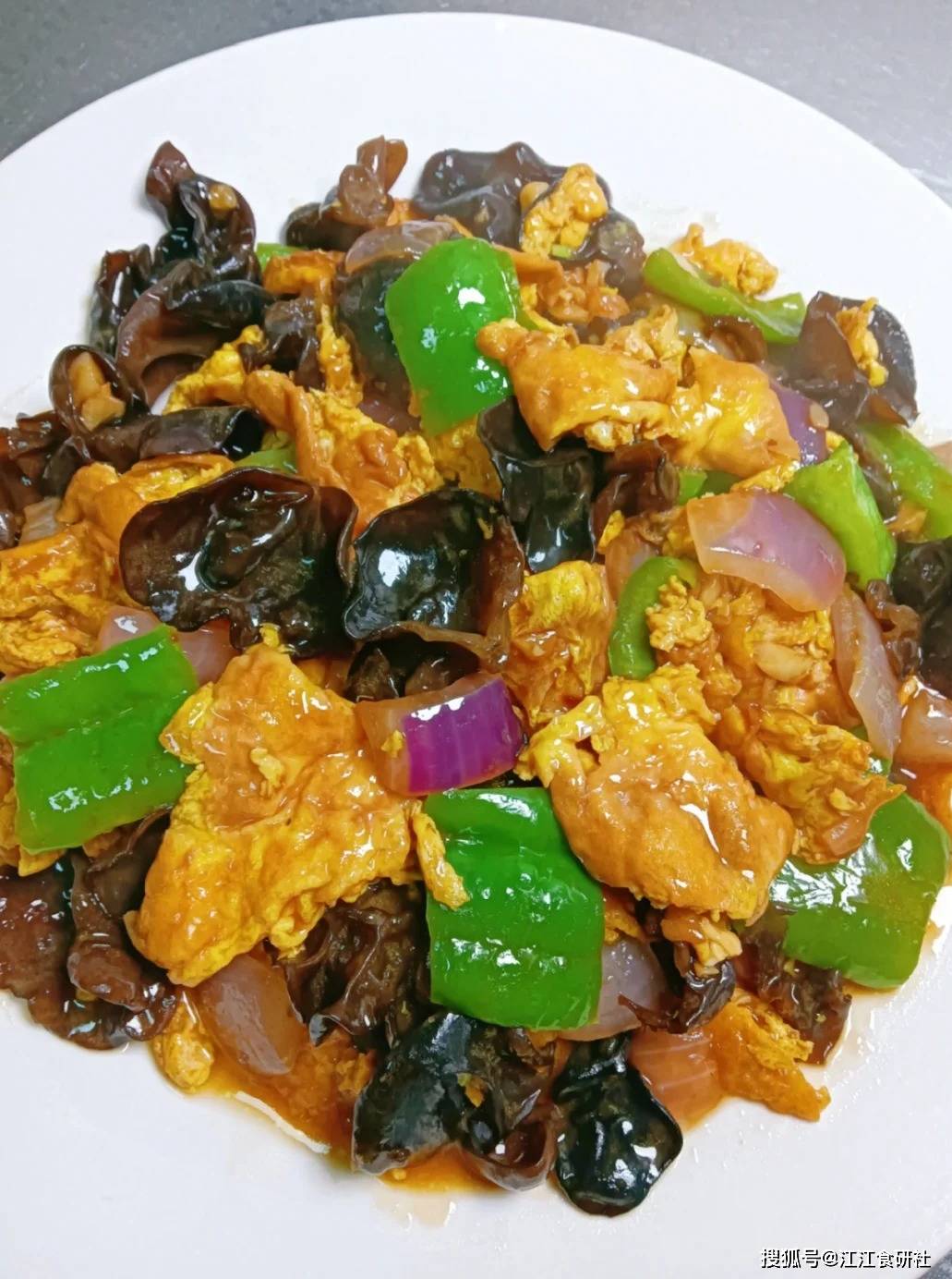 这道菜看着就让人心情愉悦,金黄、翠绿、紫白、乌黑,色彩丰富得像幅画。木耳富含胶质,能帮助肠道蠕动;鸡蛋补充优质蛋白,给身体注入活力。
