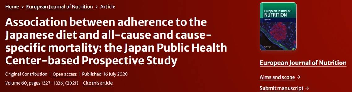 日本东北大学医学系研究科公众卫生学在《欧洲营养杂志》上发表了一项针对9.2万人的研究指出,饮食习惯或是日本人长寿的秘诀。